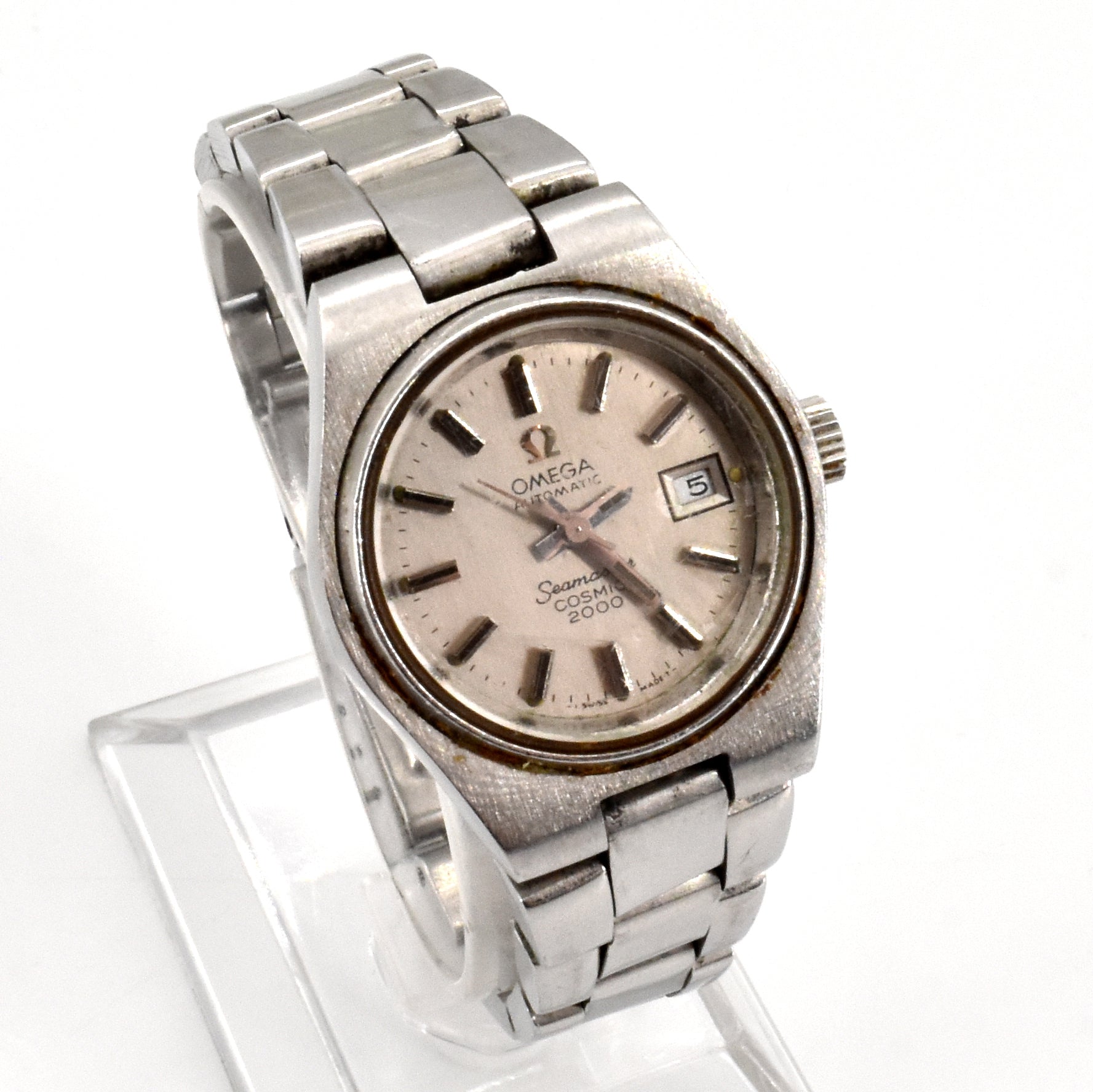 Damespolshorloge in staal OMEGA Seamaster Cosmic 2000 automatisch (ontregeld, glas beschadigd, gedeukt) (+/- 15.5 cm)