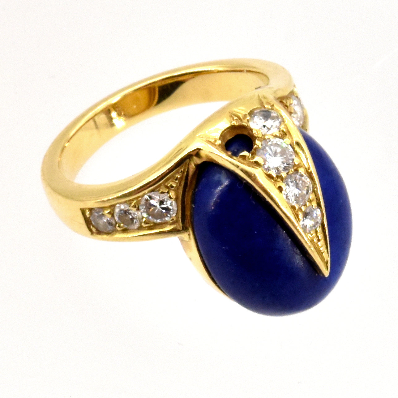 Ring in 18 kt geelgoud bezet met 10 briljanten +/- 0.55 kt en 1 lapis lazuli (steen ontbreekt) - 9.3 g bruto (Maat: 52.5)