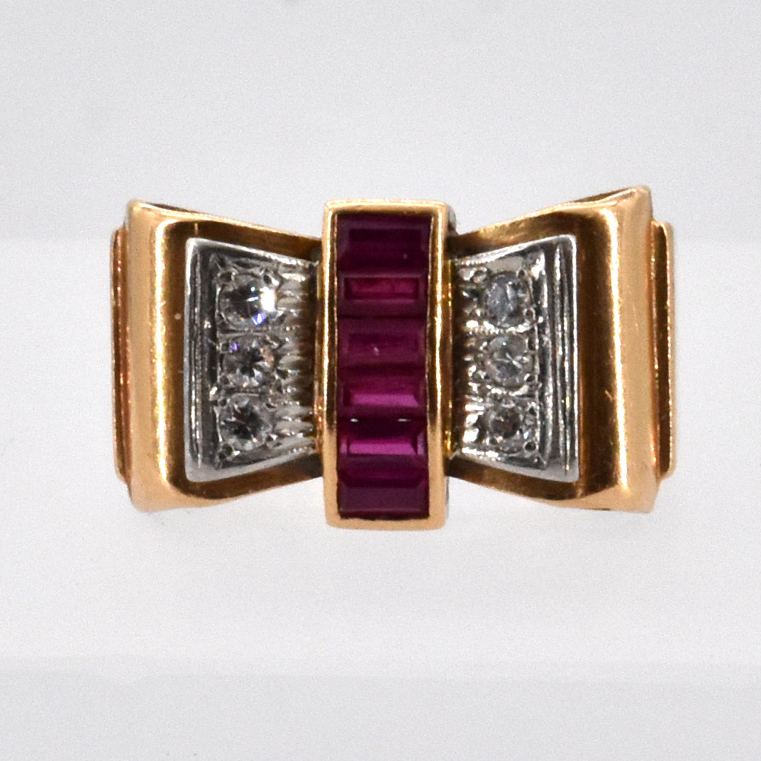 Ring in 18 kt geelgoud met delen in platina bezet met 6 briljanten +/- 0.24 kt (kleurstenen, licht beschadigd) - 10.1 g bruto (Maat: 60)