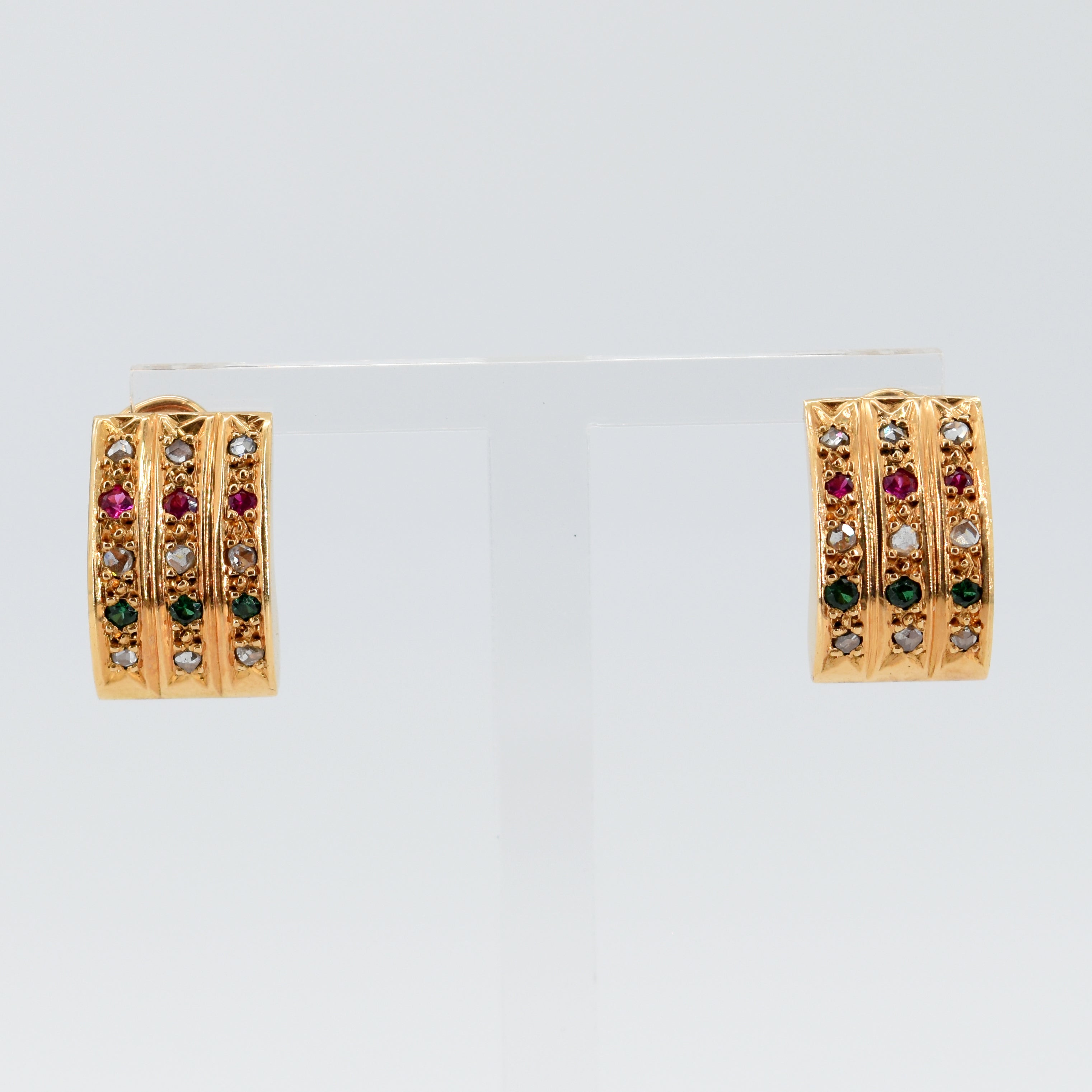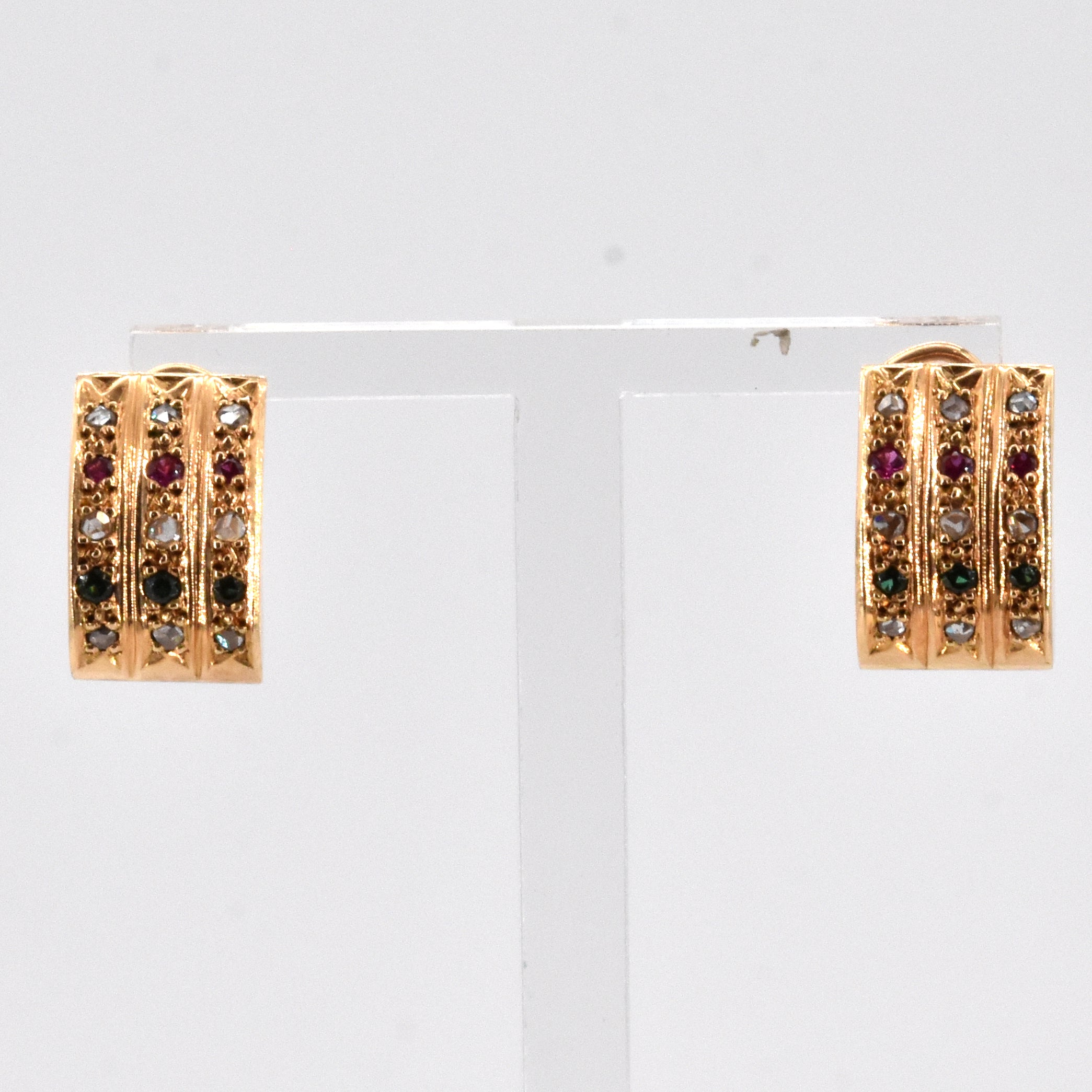 2 oorringen in 18 kt roségoud bezet met diamantroosjes (kleurstenen) - 8.4 g