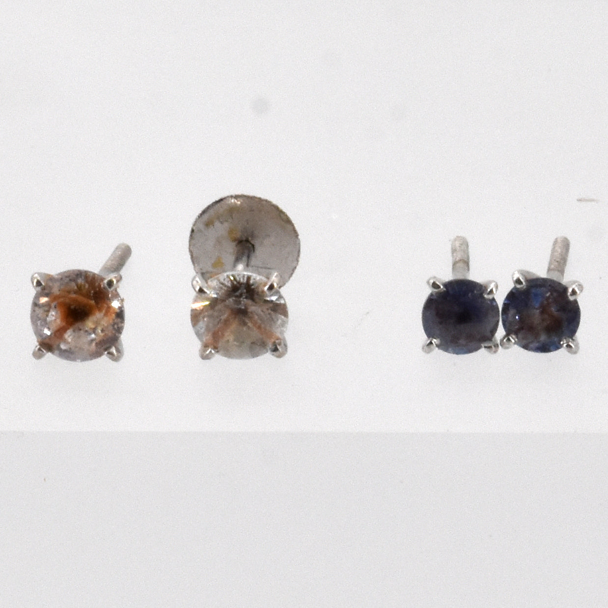 4 oorringen in 18 kt witgoud (valse stenen, kleurstenen, 3 drukknopen ontbreken) - 1.6 g bruto