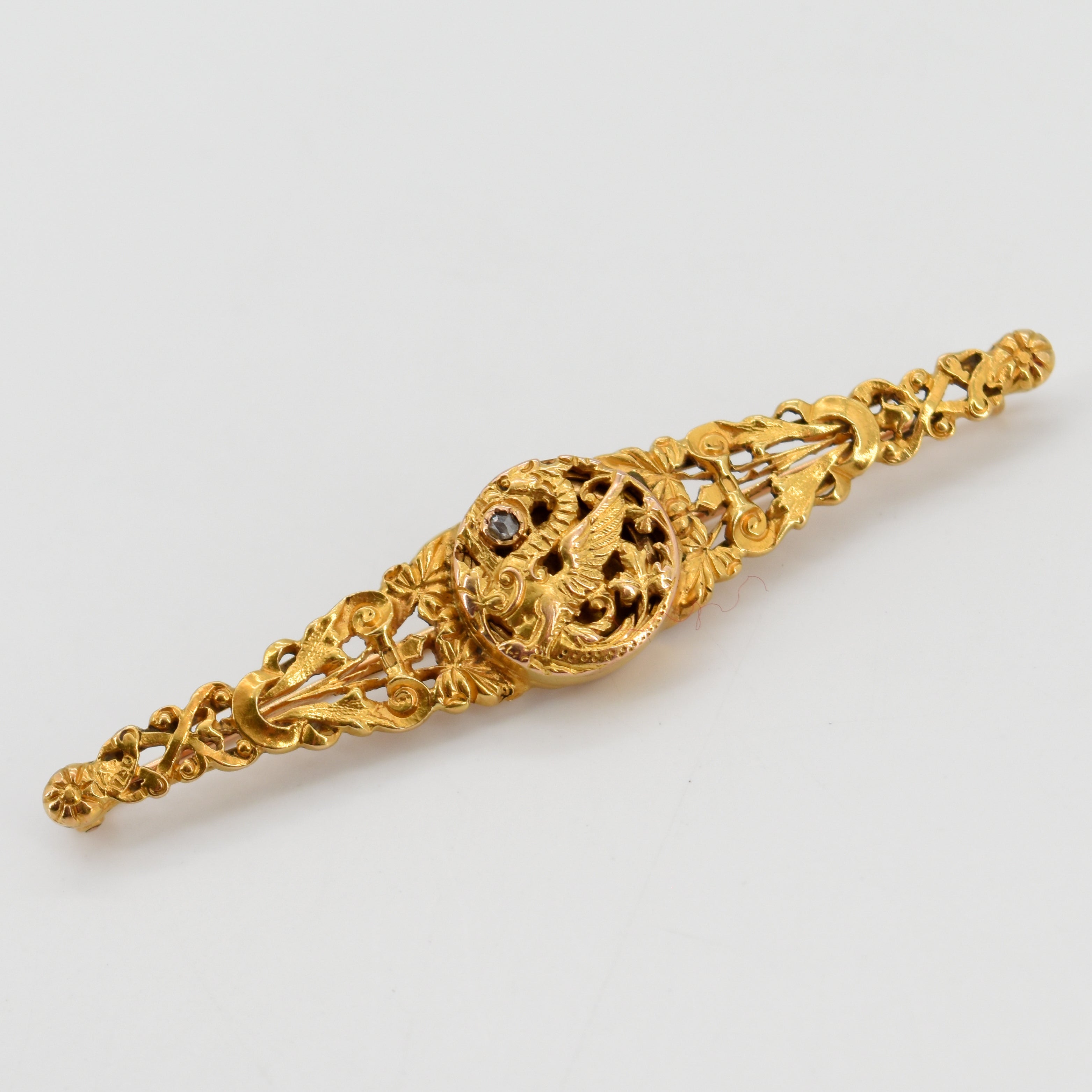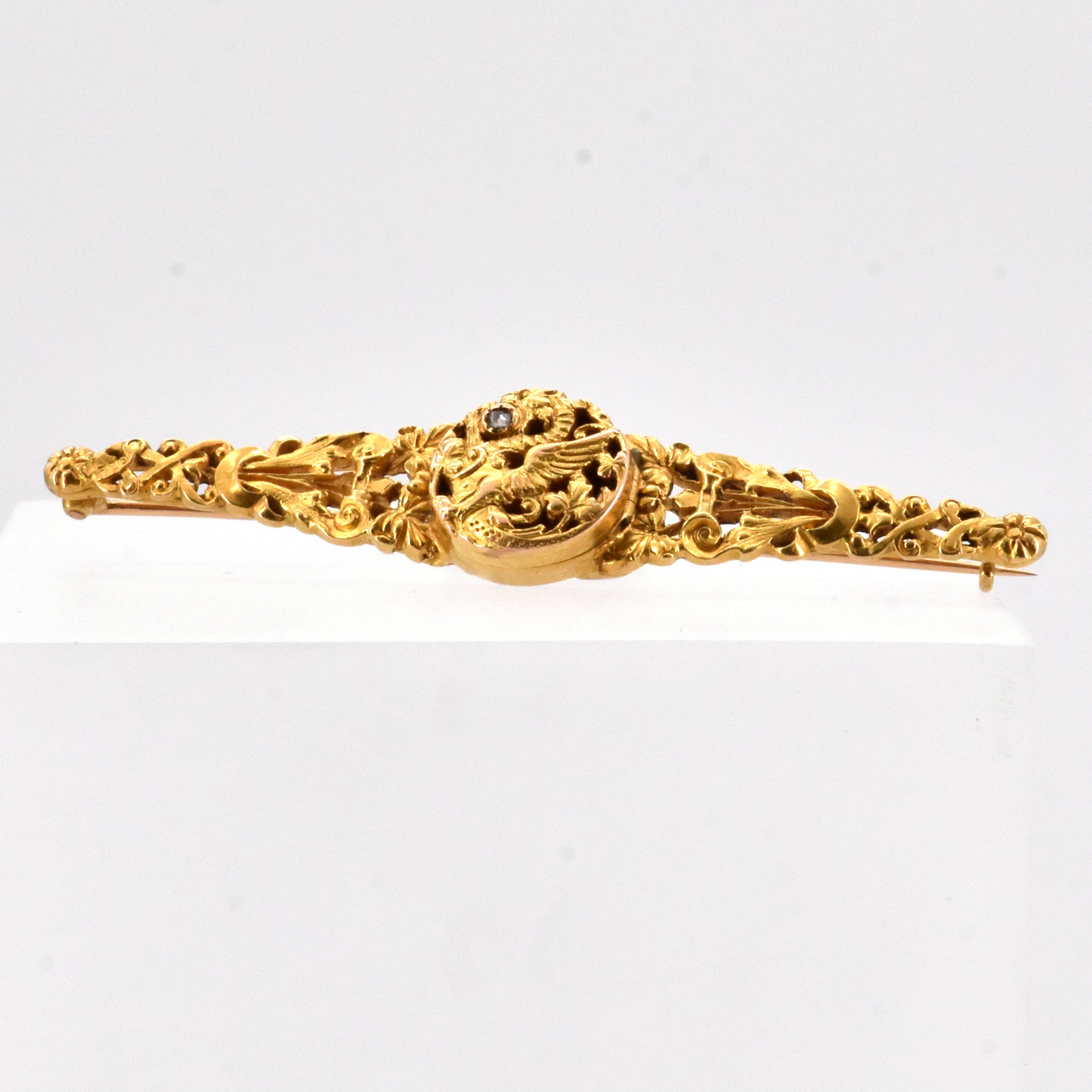 Borstspeld/fotohouder in 18 kt geelgoud bezet met 1 diamantroosje - 13.8 g