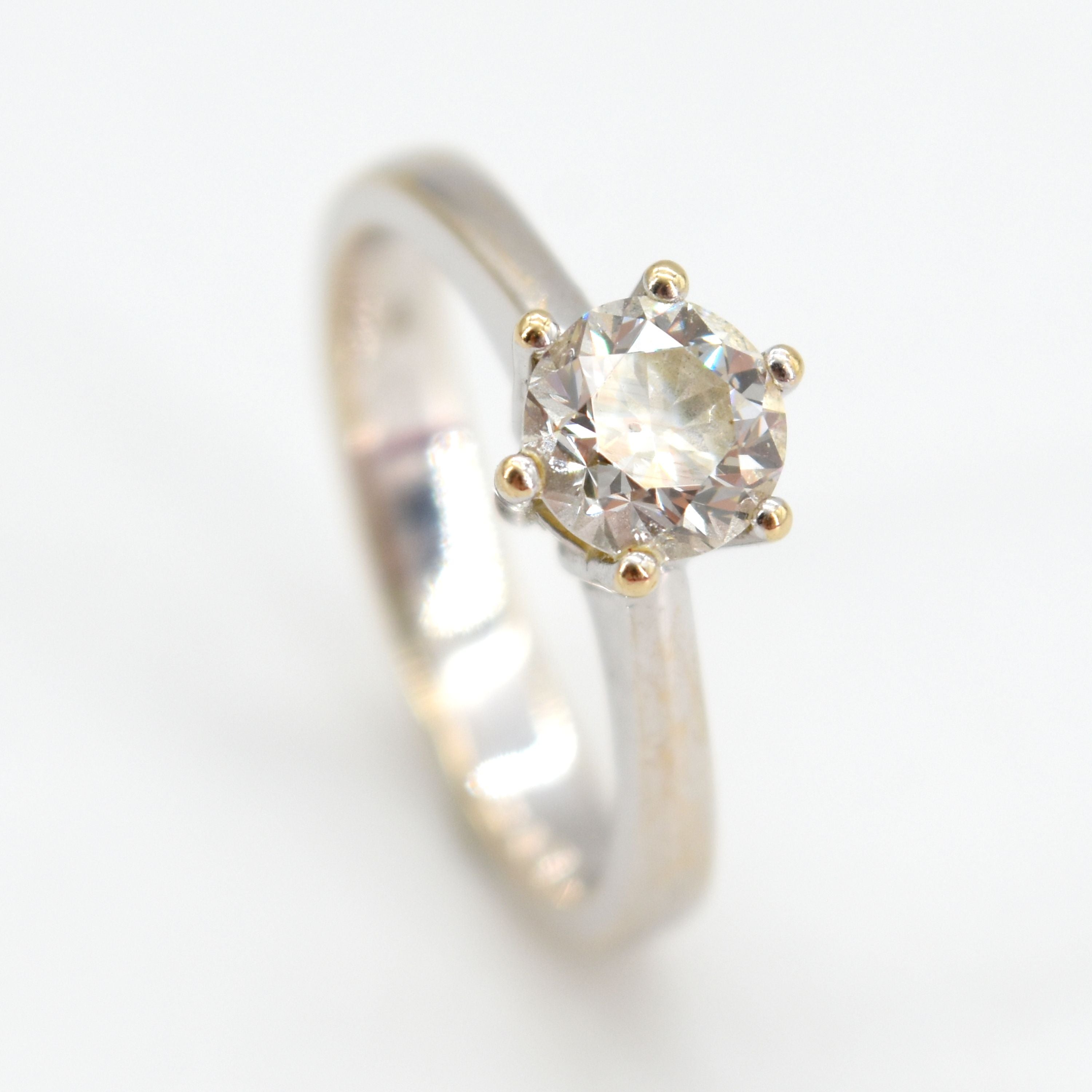 Ring in 18 kt witgoud bezet met 1 briljant +/- 1 kt (gegraveerd GIA 5181723952) - 5.1 g (Maat: 54.5)