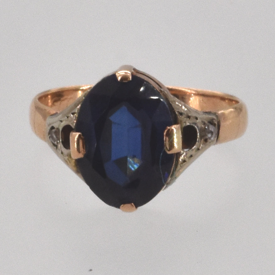 Ring in 18 kt geel- en witgoud bezet met 2 diamantroosjes (kleursteen, beschadigd, gedeukt) - 3.4 g bruto (Maat: 54)
