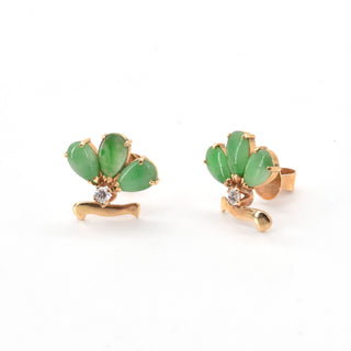 2 oorringen in 18kt geelgoud bezet met 6 jades (valse stenen) - 4.9 g bruto