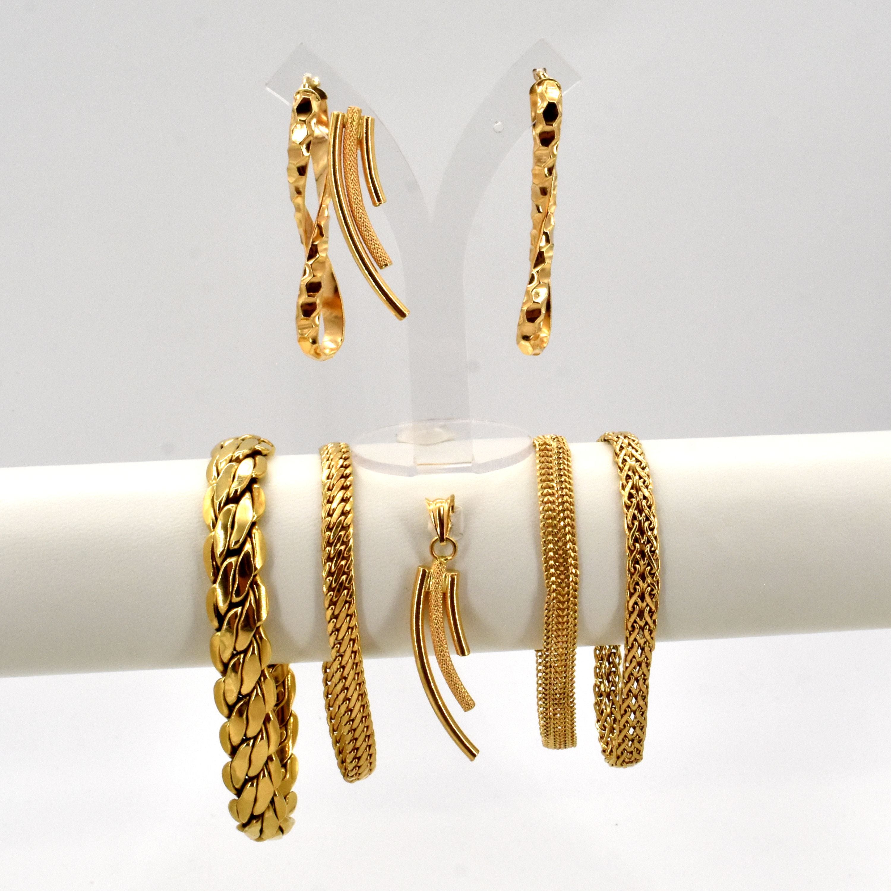 Hanger, 4 armbanden en 3 oorringen in 18 kt geelgoud (licht gedeukt) - 43.3 g (17.5, 18, 18.5 & 21 cm)