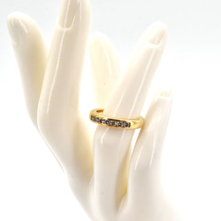 Ring in 18 kt geelgoud bezet met 4 briljanten +/- 0.20 kt (valse stenen) - 4.7 g bruto (Maat: 51)