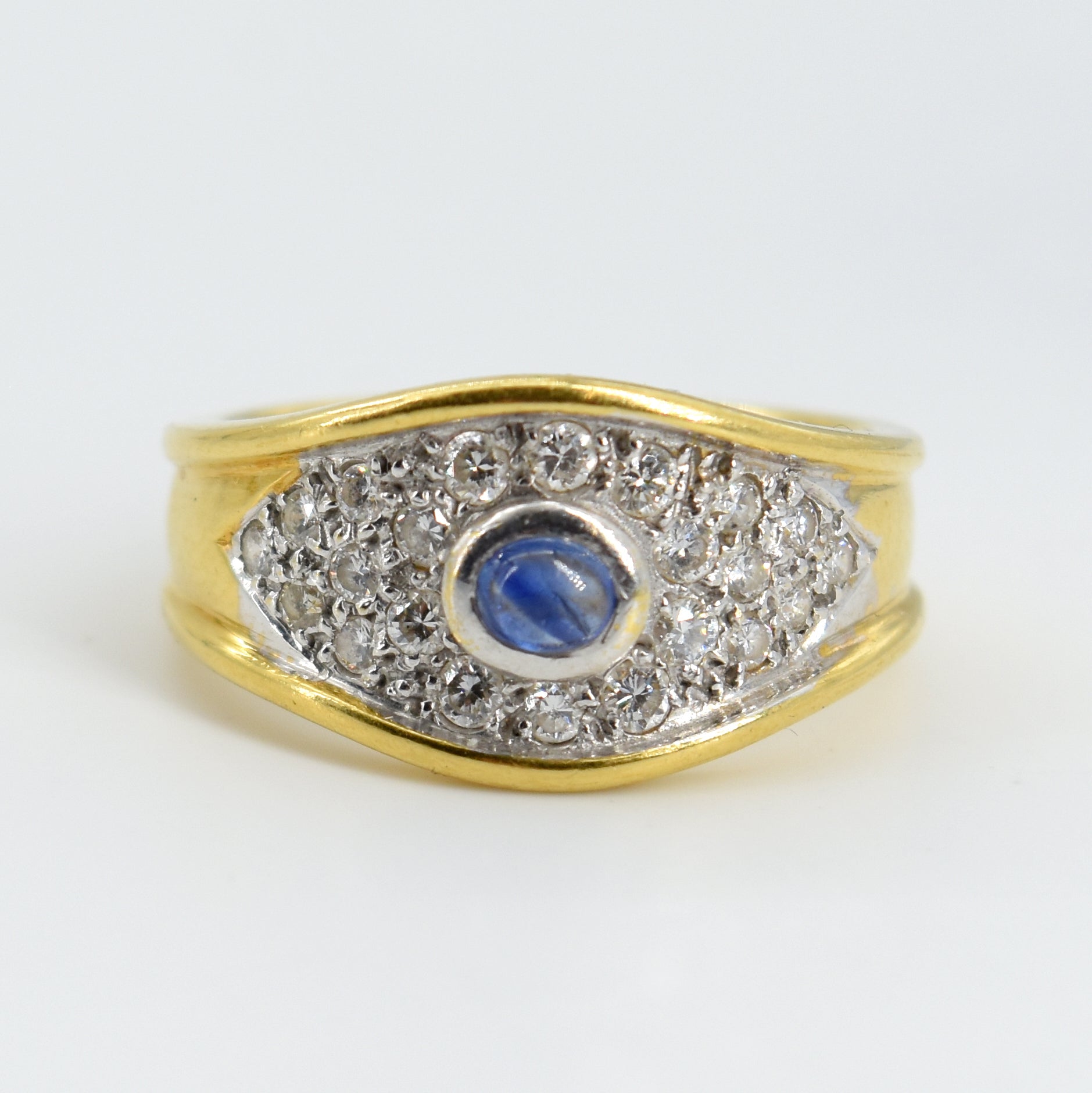 Ring in 18 kt witgoud bezet met 22 briljanten +/- 0.50 kt (kleursteen) - 5.5 g (Maat: 53)
