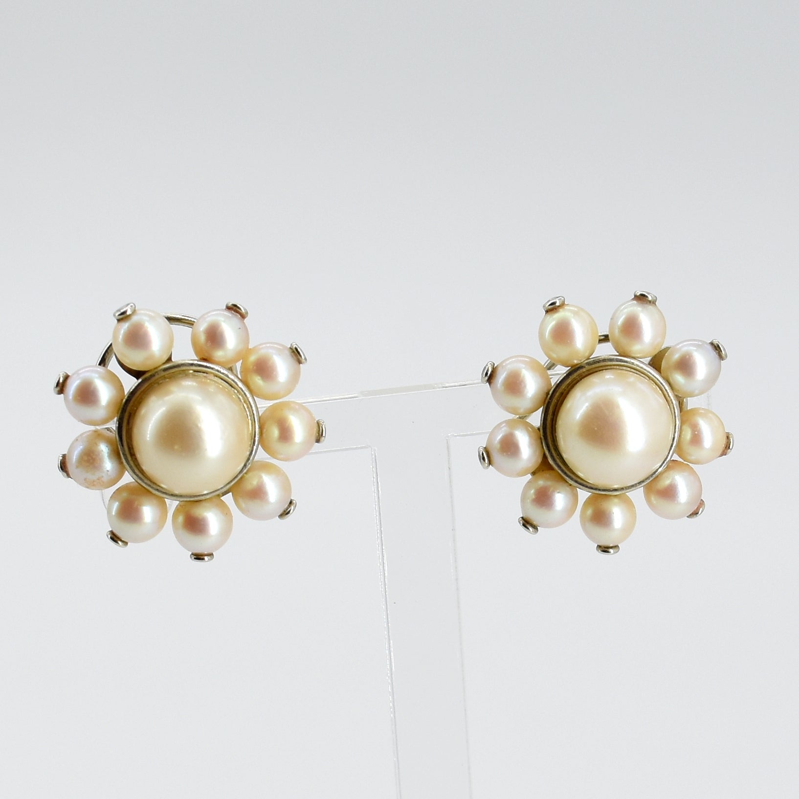 2 clip oorringen in 18 kt witgoud bezet met parels - 11.6 g bruto