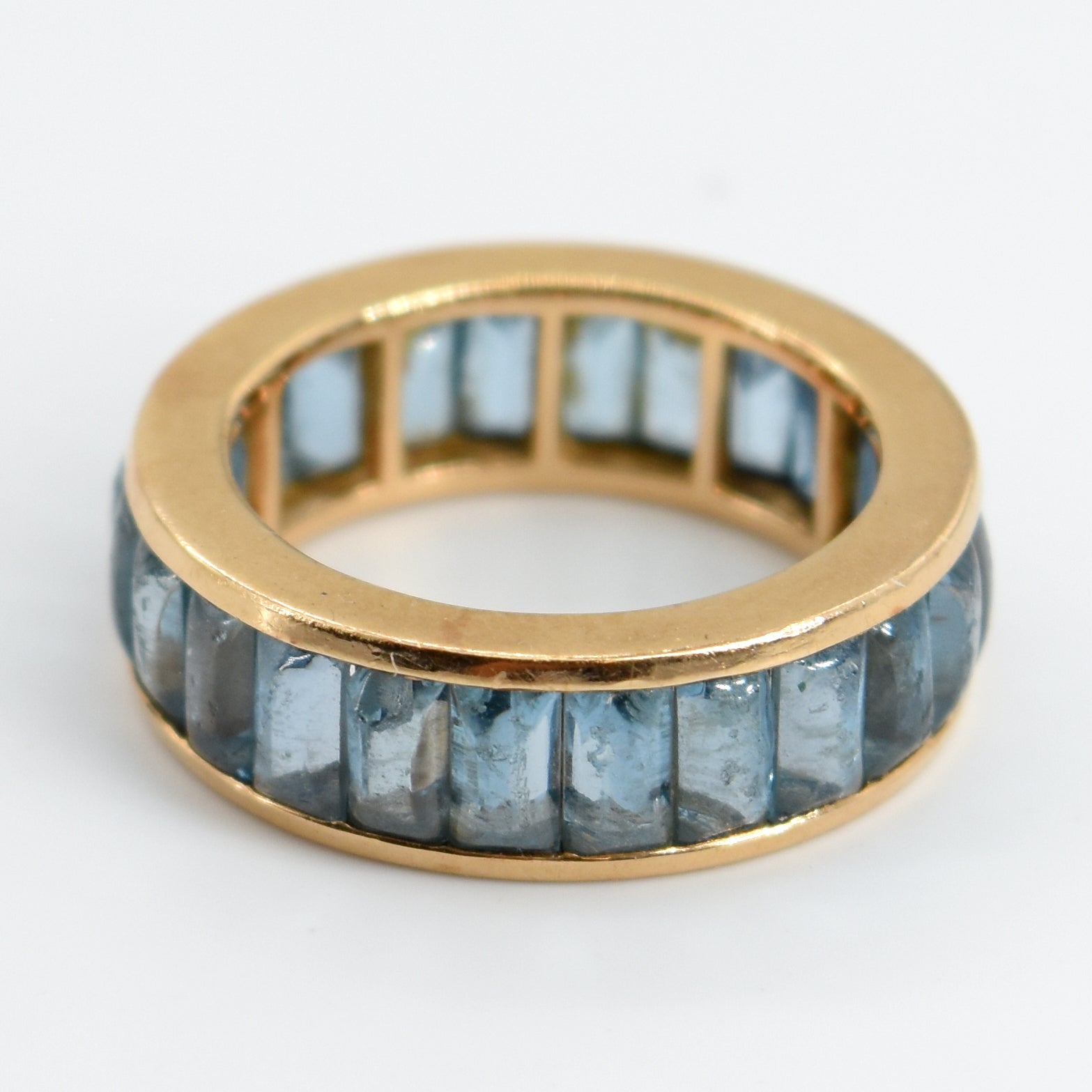 Ring in roségoud bezet met aquamarijnen (stenen beschadigd) - 5.7 g bruto (Maat: 48.5)