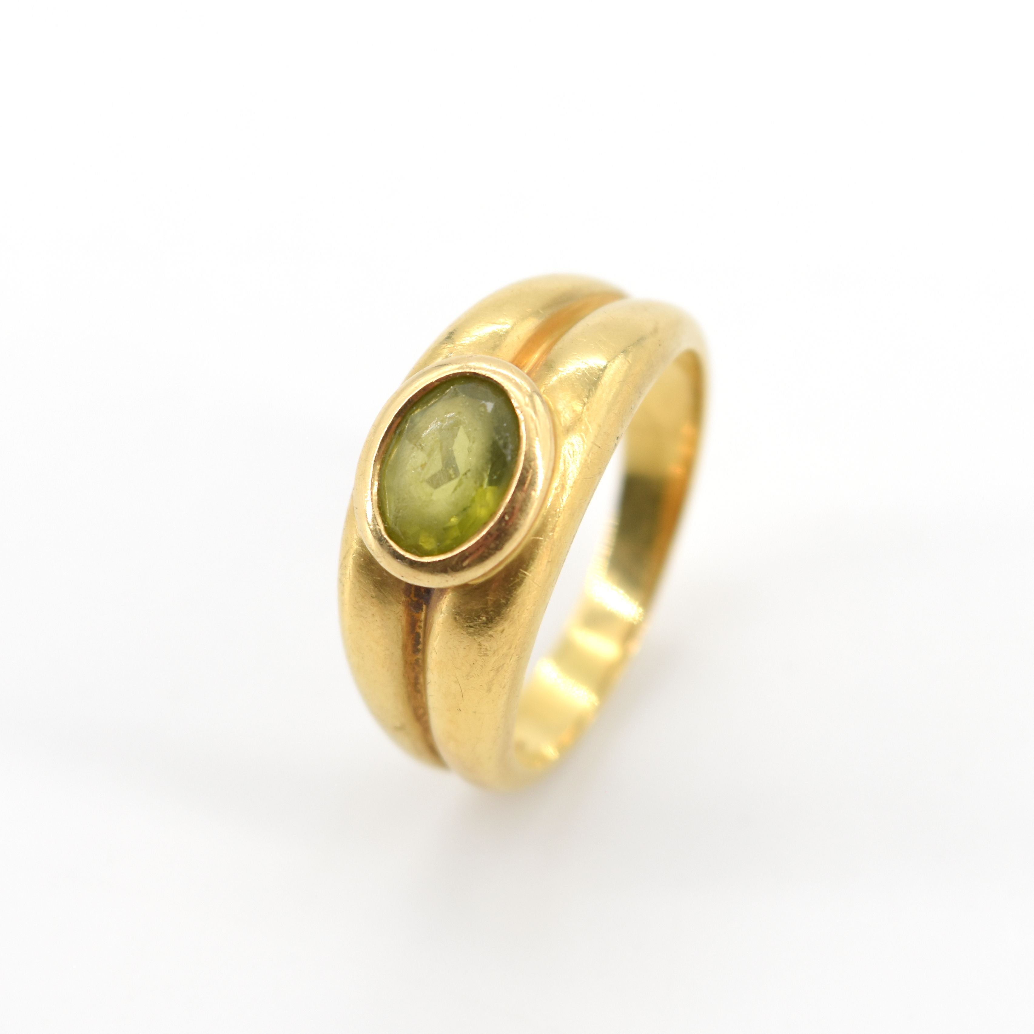 Ring in 18 kt geelgoud bezet met 1 peridoot (steen beschadigd) - 7.1 g bruto (Maat: 60.5)