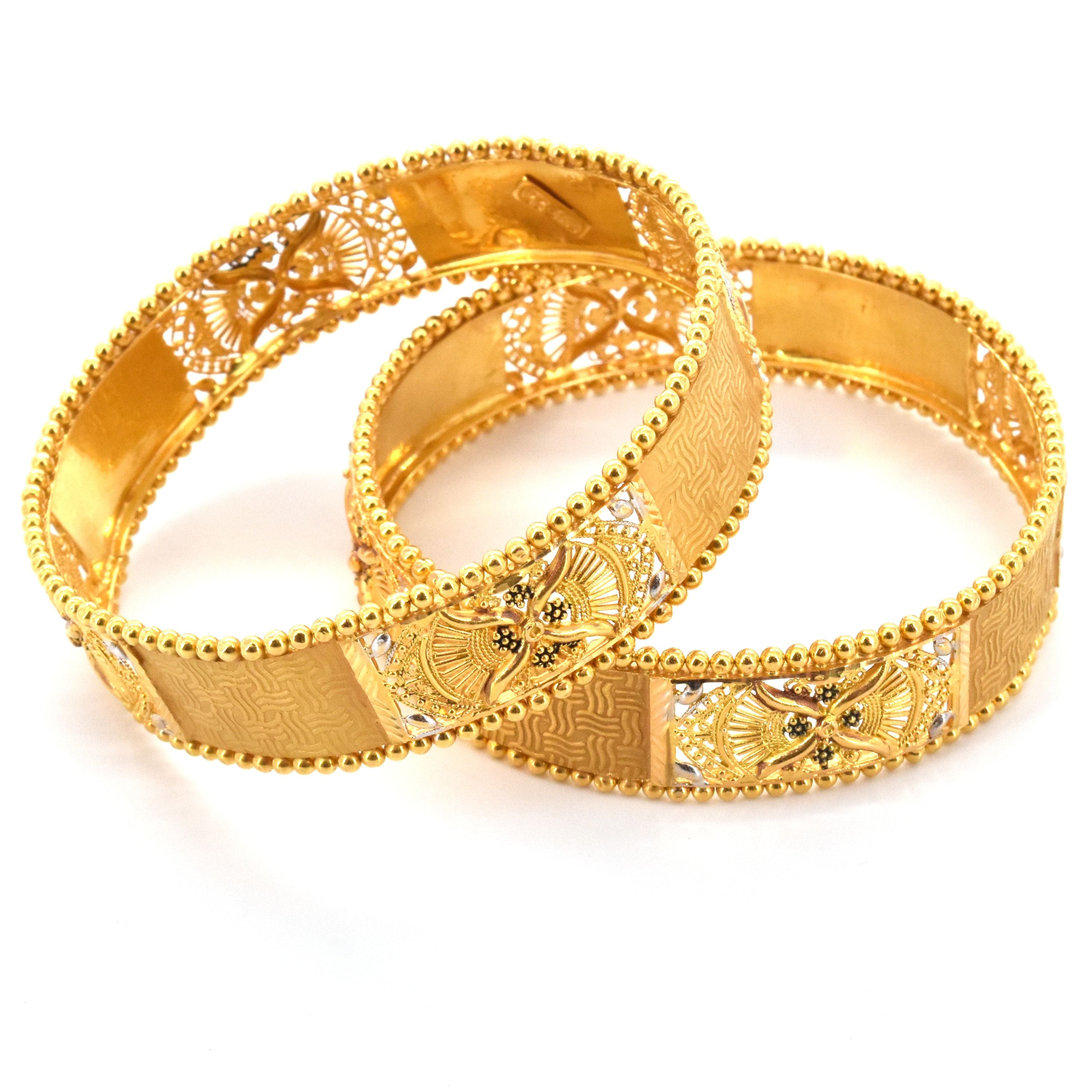 2 onbuigzame armbanden in 22 kt geel- en witgoud (gedeukt) - 43.2 g (19 cm x 2)
