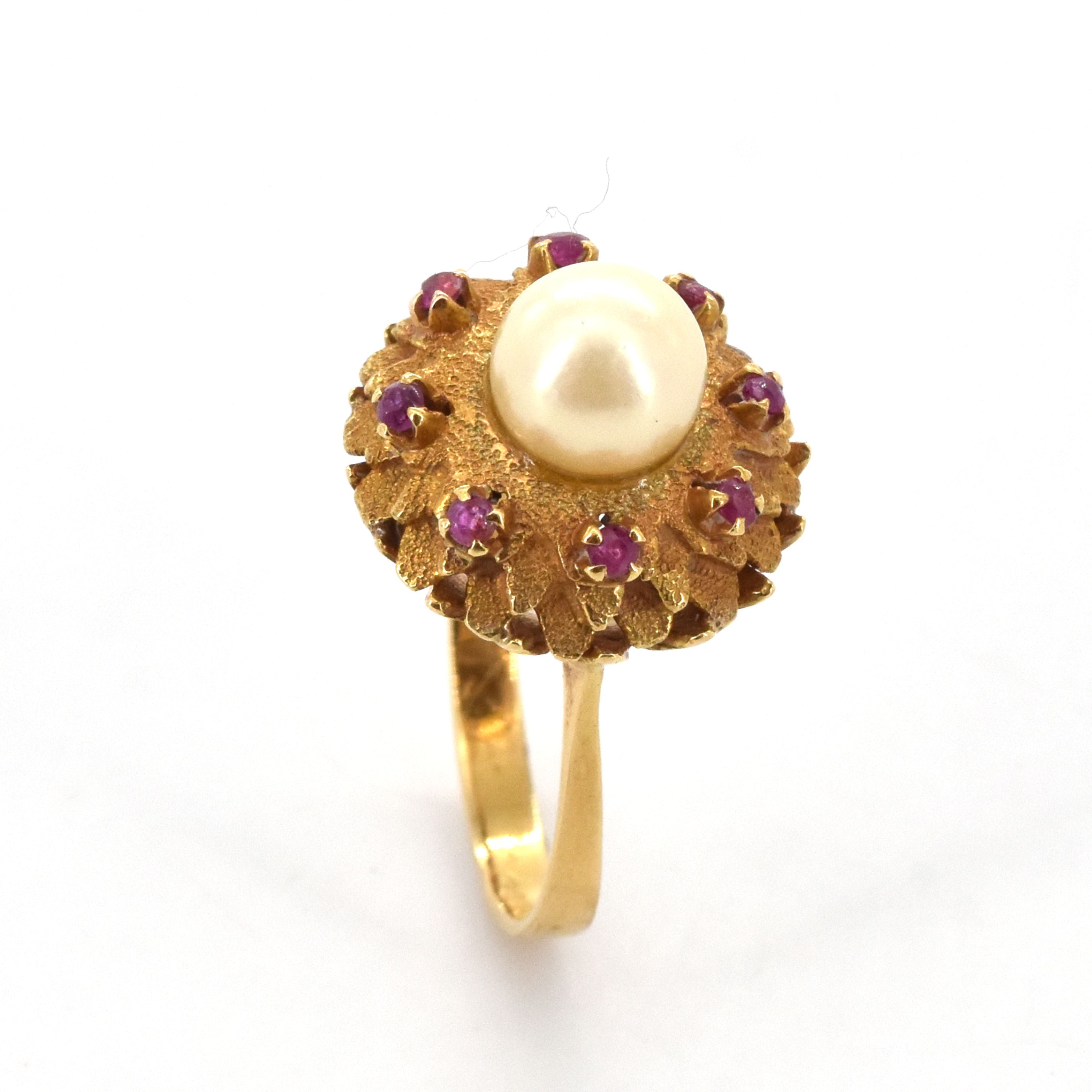 Ring in 18 kt geelgoud bezet met 1 parel (kleurstenen, licht beschadigd) - 7.2 g bruto (Maat: 57)