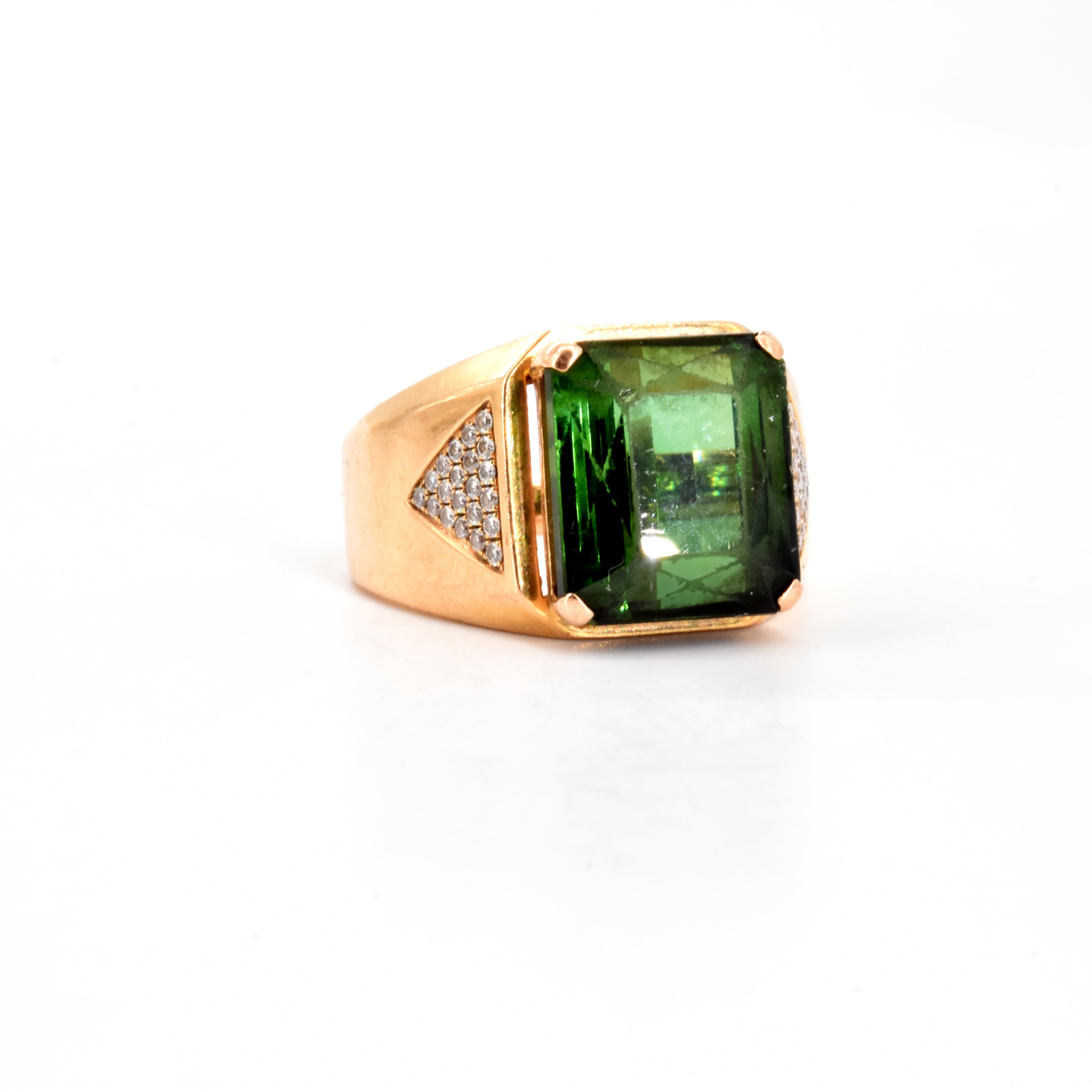 Ring in 18 kt roségoud bezet met 1 toermalijn en 42 briljanten +/- 0.42 kt (steen beschadigd) - 11.9 g bruto (maat: 61)