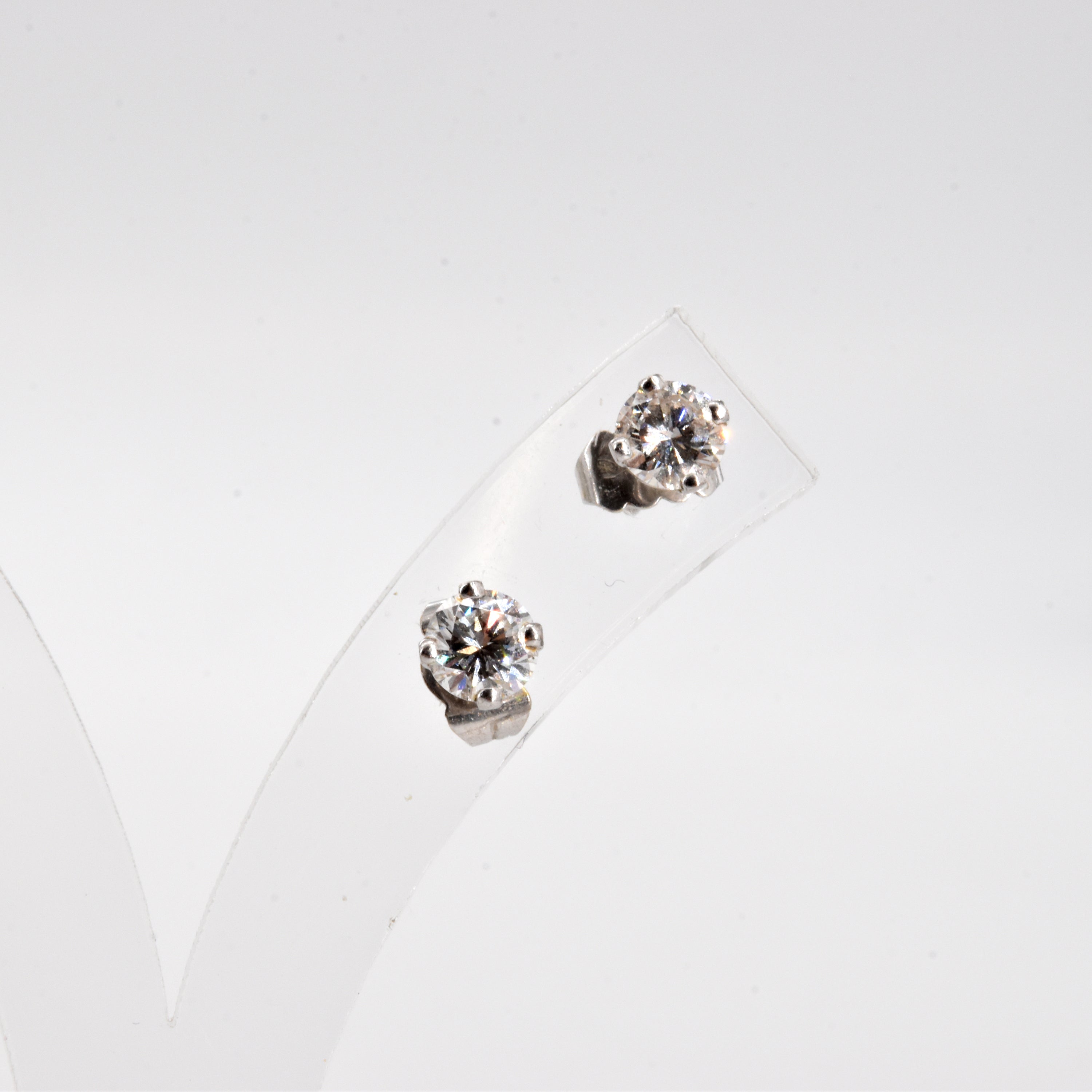 2 oorringen in 18 kt witgoud bezet met 1 briljant +/- 0.45 kt en 1 briljant +/- 0.50 kt (beschadigd) - 1.5 g