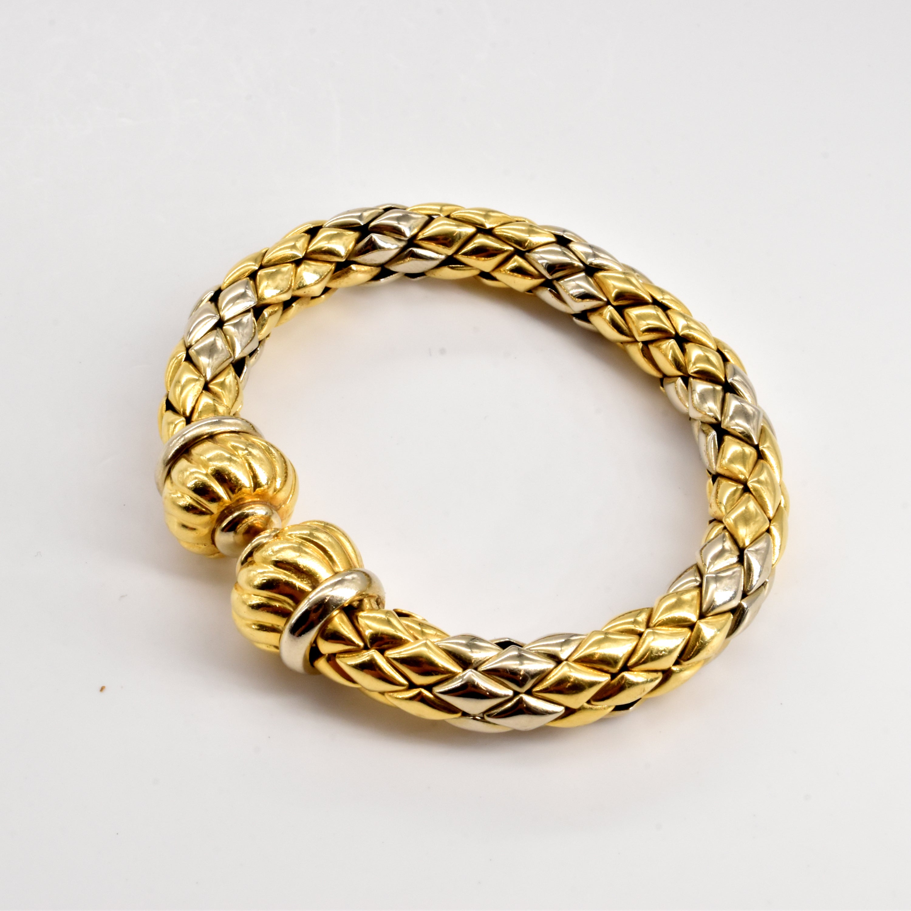 Onbuigzame armband in 18 kt geel- en witgoud getekend CHIMENTO (gedeelte in metaal, gedeukt) - 49.6 g bruto (15.5 cm)
