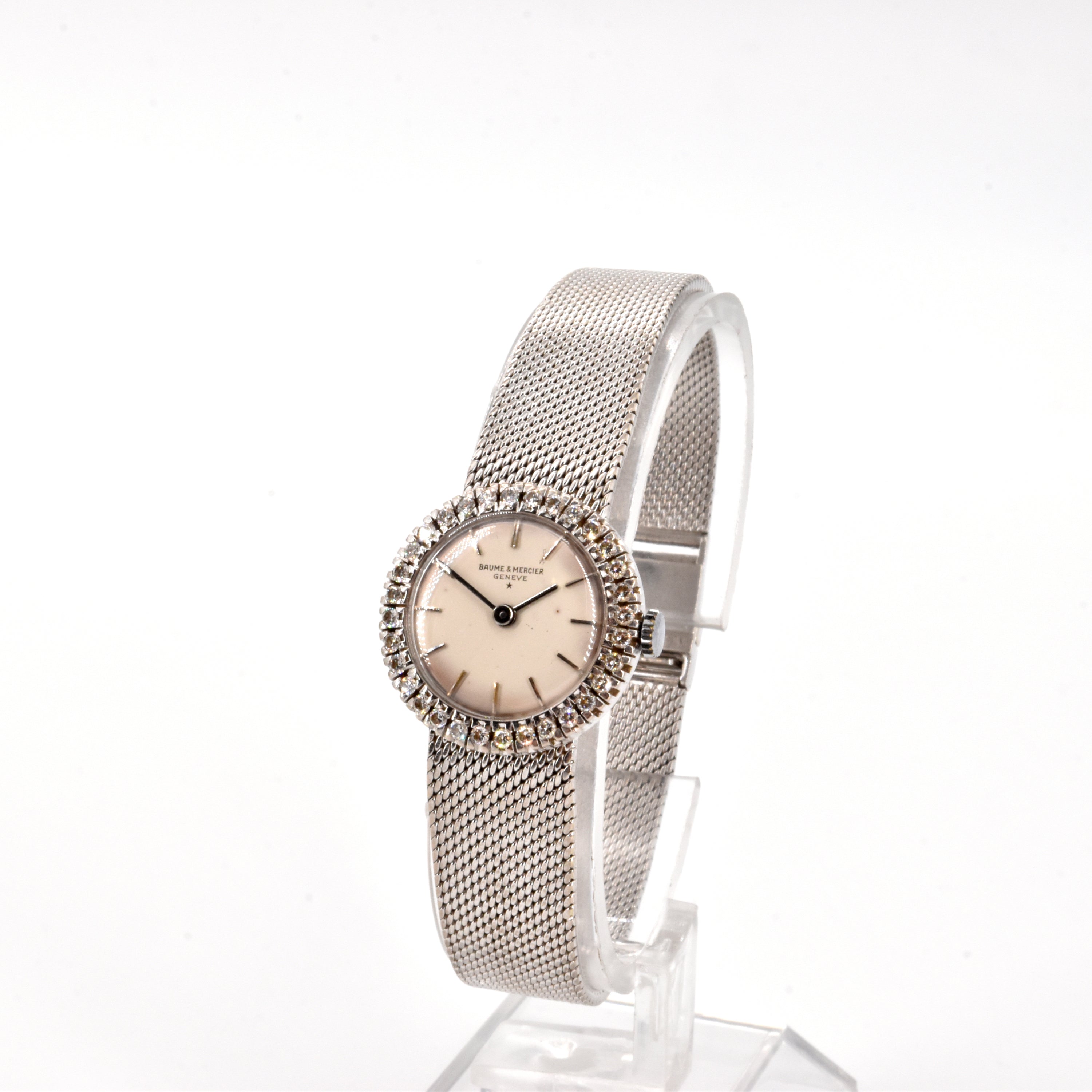 Damespolshorloge in 18 kt witgoud BAUME & MERCIER mechanisch bezet met 32 briljanten +/- 0.64 kt (beschadigd, gedeukt) - 41.4 g bruto (17 à 17.5 cm)