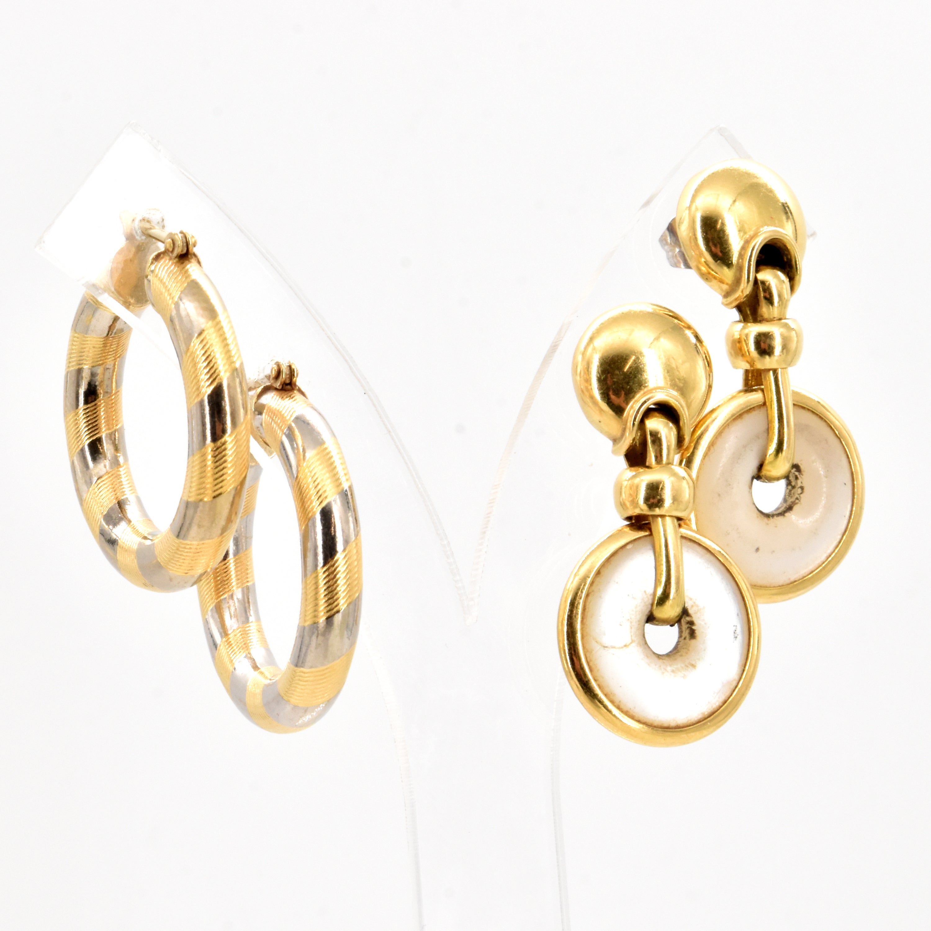 4 oorringen in 18 kt geel- en witgoud bezet met parelmoer (drukknoop ontbreekt) - 12.1 g bruto