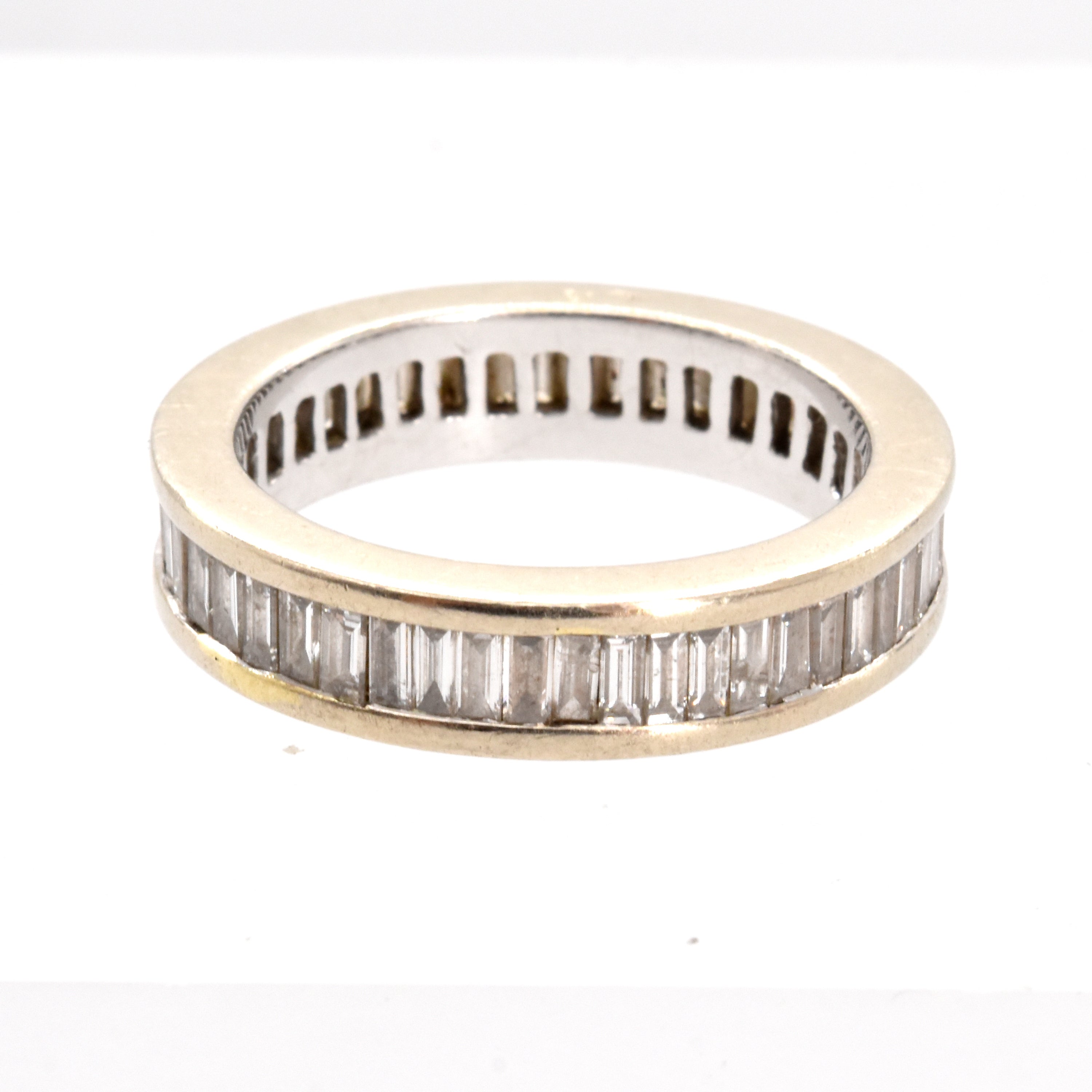 Trouwring in 18 kt witgoud bezet met 52 diamanten baguette slijpsel +/- 1.80 kt (steen ontbreekt, steen beschadigd) - 7.1 g (Maat: 57)