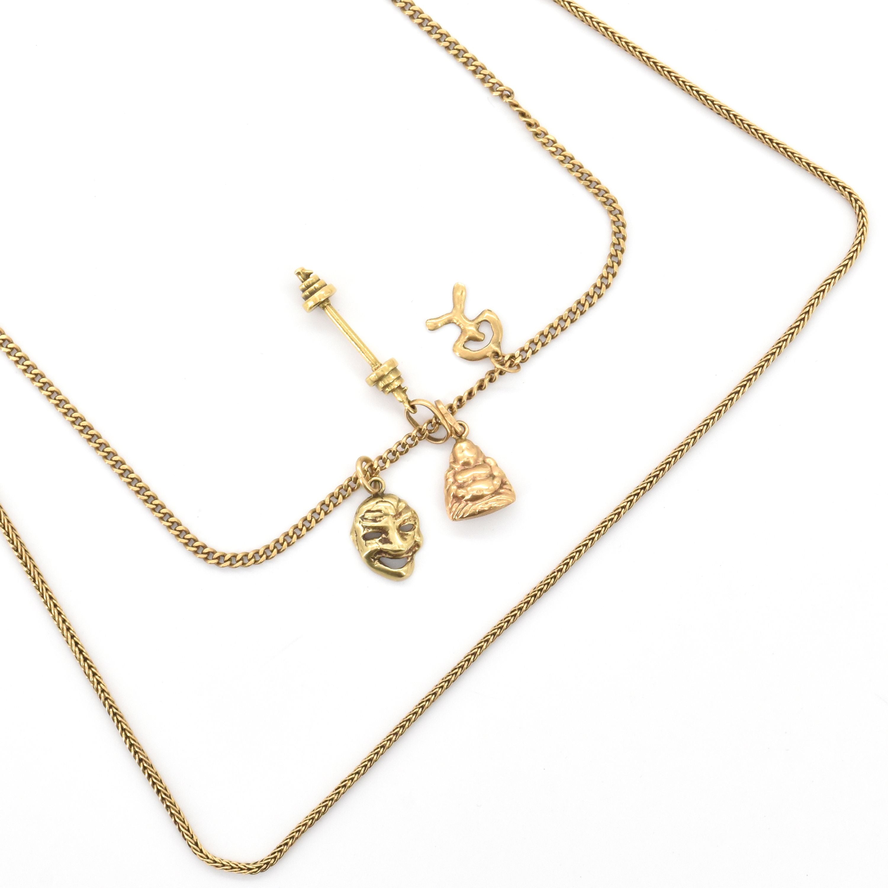 2 halskettingen en 3 hangers in 18 kt geelgoud - 36.2 g (63.5 & 75 cm) Hanger in 14 kt geelgoud - 1.6 g