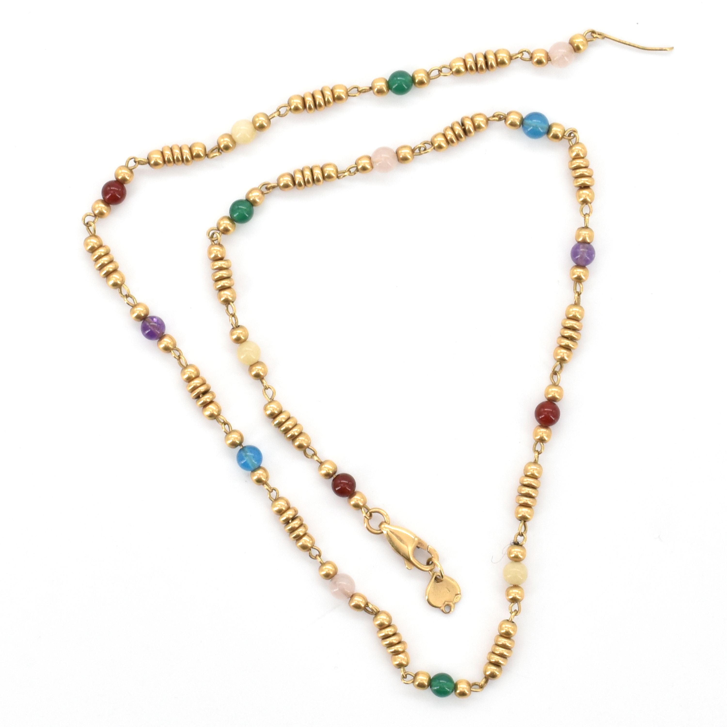 Halsketting in 18 kt geelgoud (kleurstenen, gebroken, stuk ontbreekt) - 15.4 g bruto (43.5 cm)