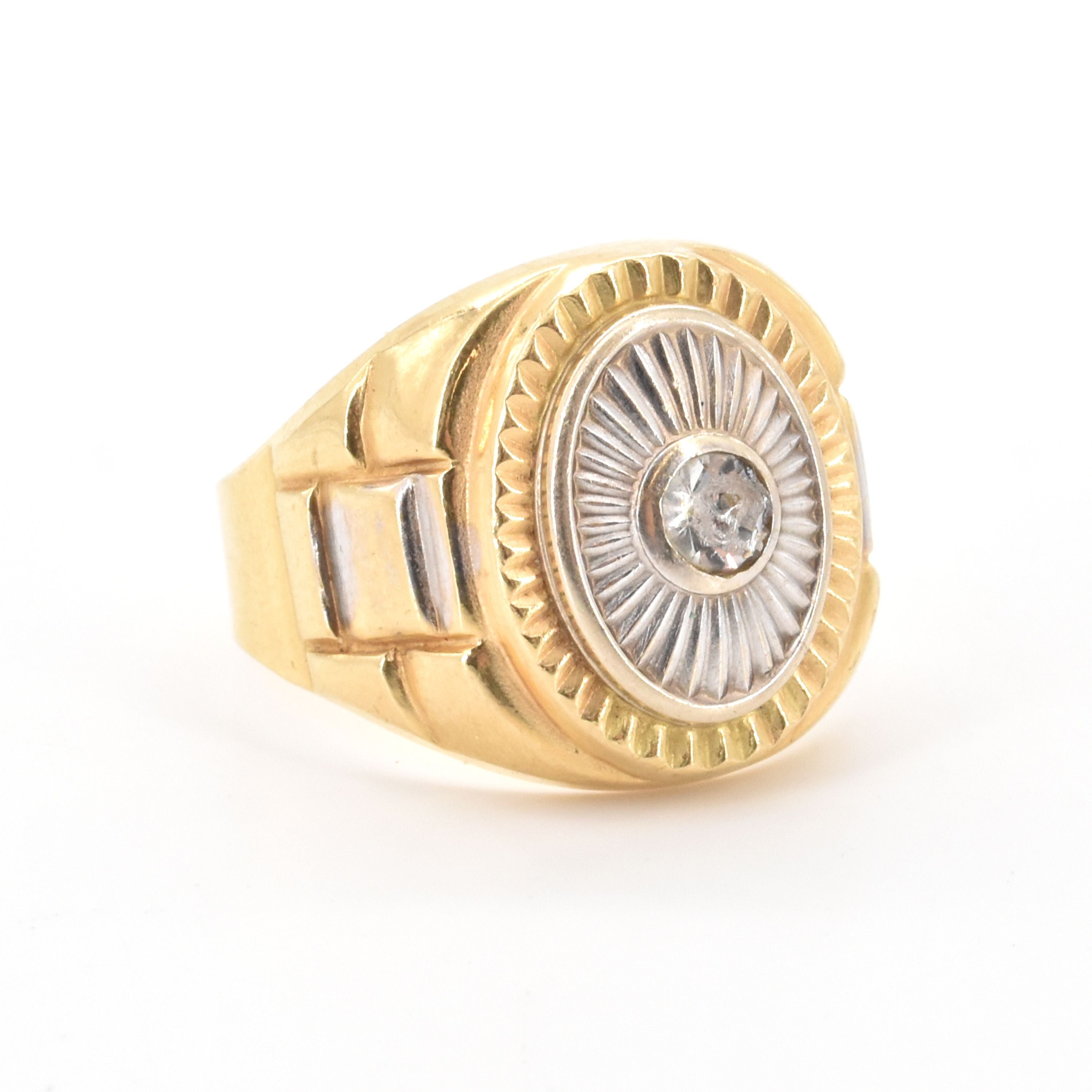 Zegelring in 18 kt geel- en witgoud (valse steen, beschadigd, gedeukt) - 8.7 g bruto (Maat: 62)