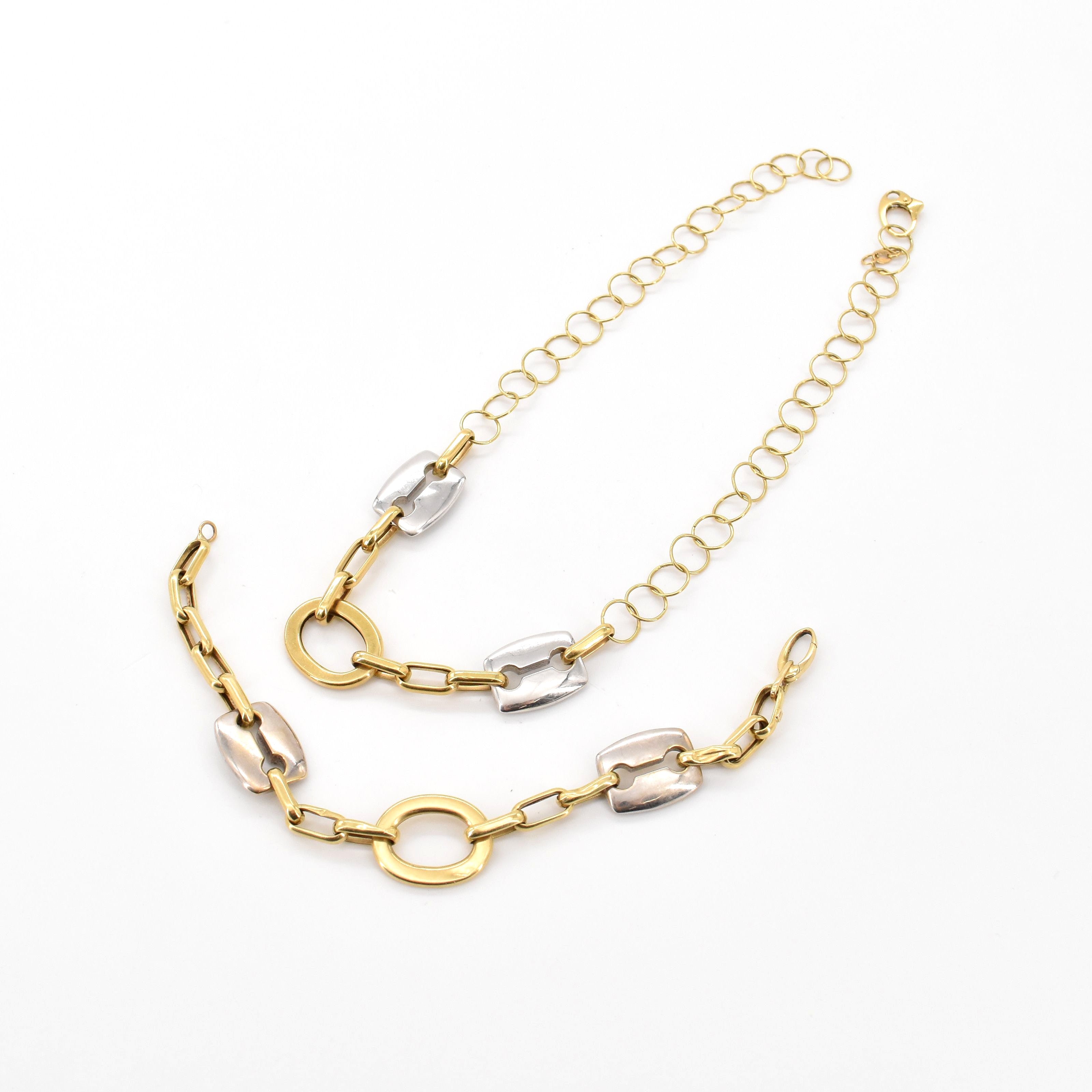 Halsketting en armband in 18 kt geel- en witgoud (gebroken, beschadigd) - 27 g (43 & 21.5 cm)