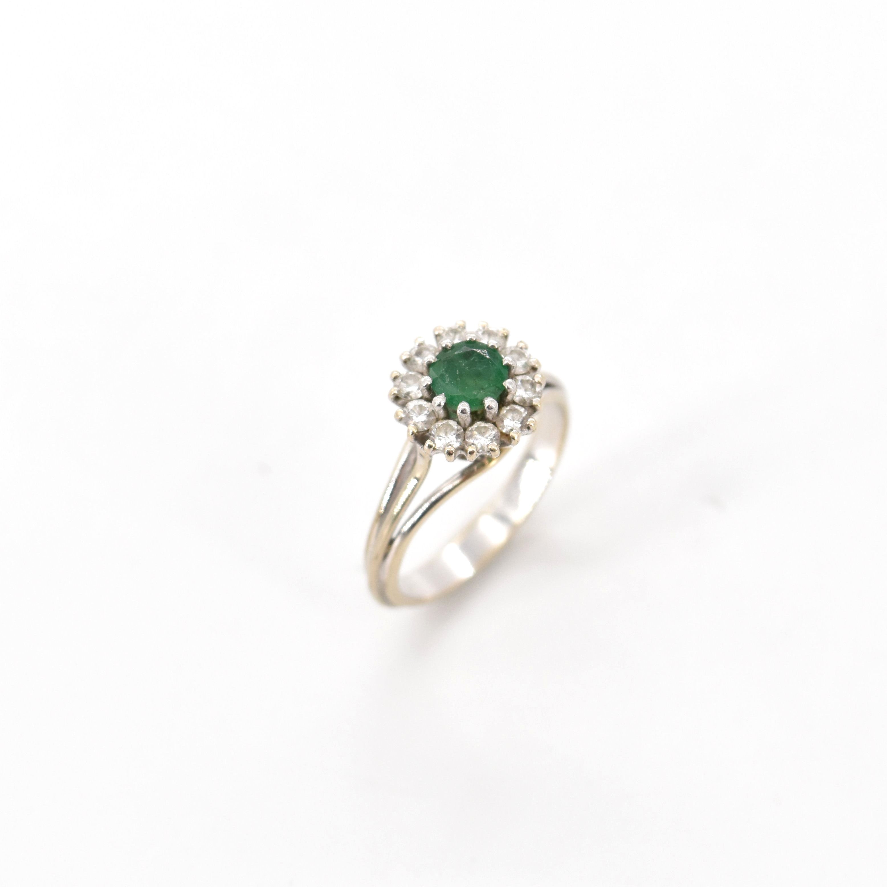 Ring in 18 kt witgoud bezet met 10 briljanten +/- 0.30 kt (kleursteen) - 3.6 g bruto (Maat: 53)
