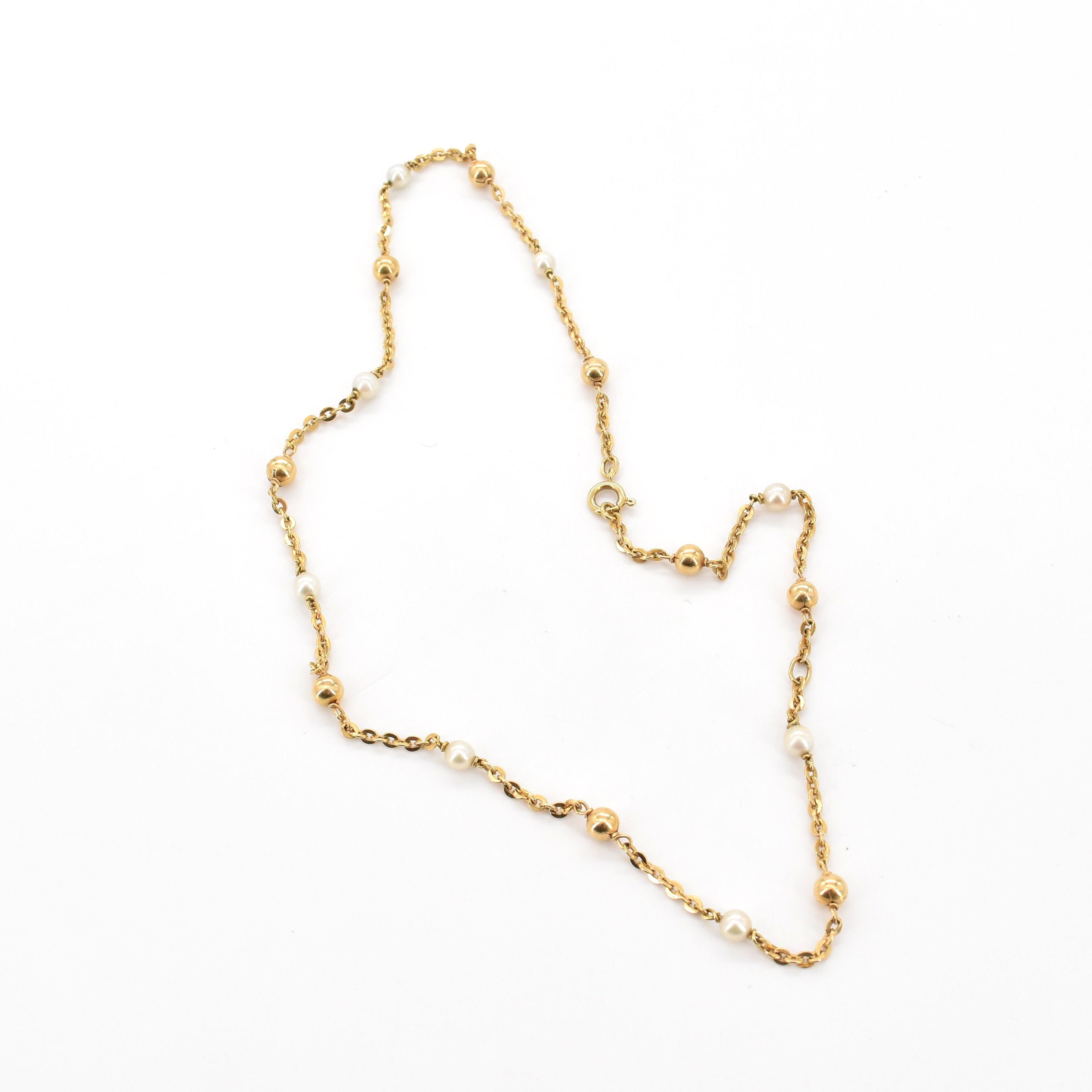 Halsketting in 18 kt geelgoud bezet met parels - 15.4 g bruto (52.5 cm)