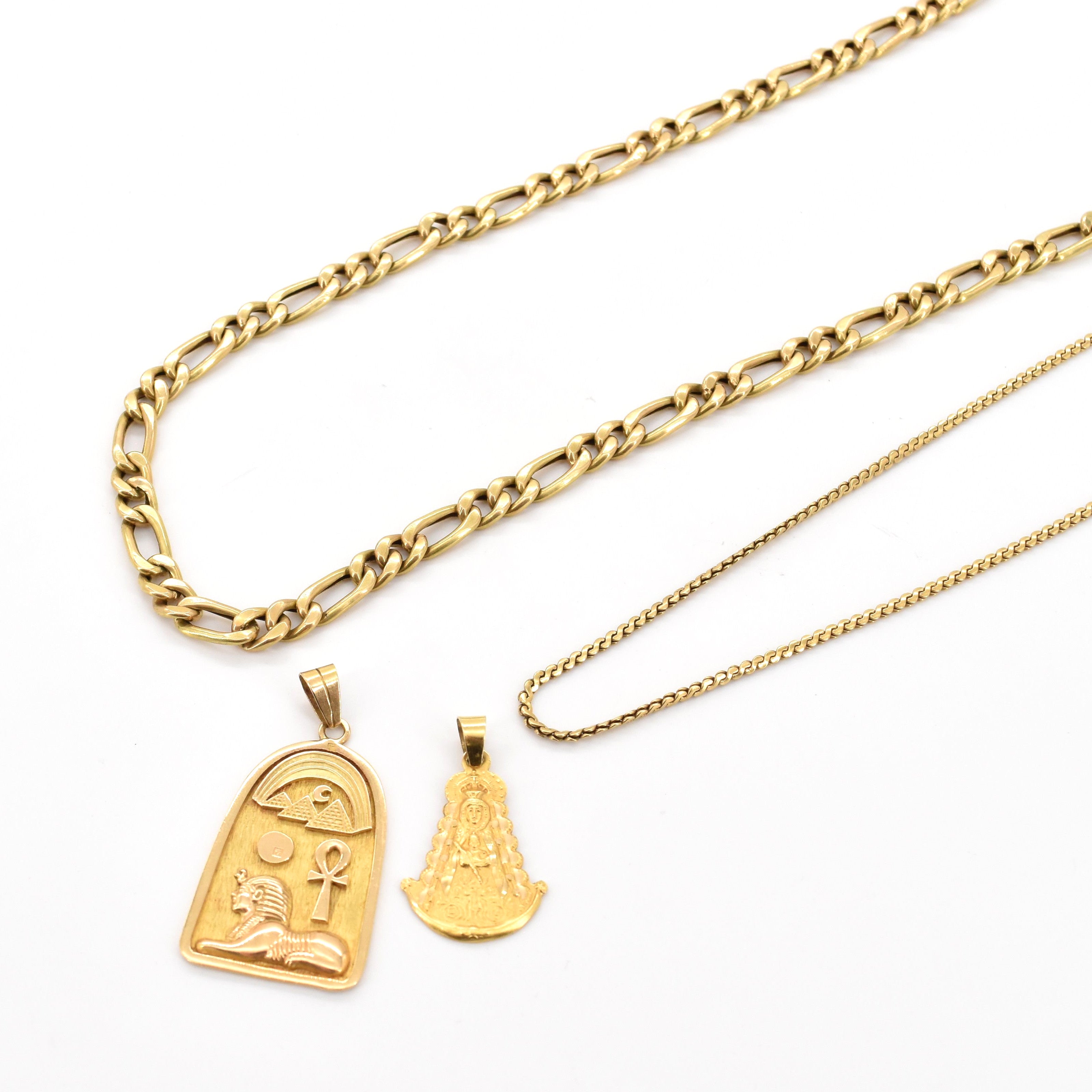Halsketting in 14 kt geelgoud - 25.4 g (60 cm) Halsketting en 2 hangers in 18 kt geelgoud - 24.4 g (50 cm)