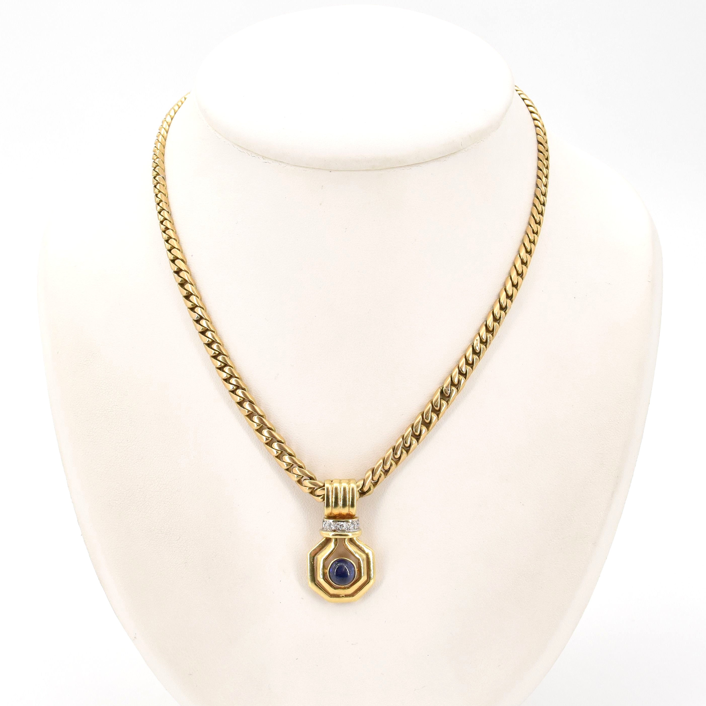 Halsketting en hanger in 18 kt geel- en witgoud bezet met 5 briljanten +/- 0.20 kt (kleursteen) - 47.8 g (42 cm)