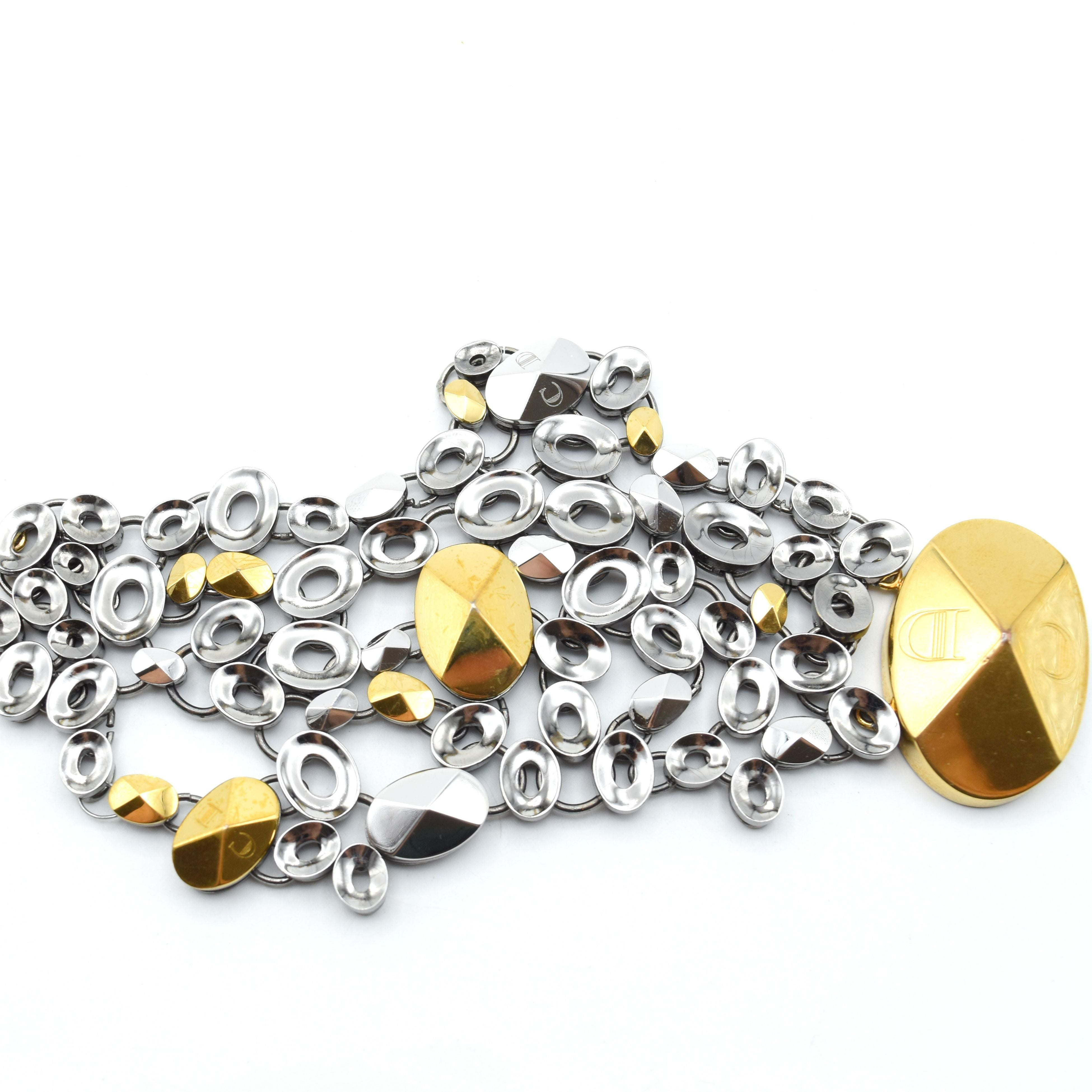 Bracelet en métal et plaqué or signé CHRISTIAN DIOR (17 cm)
