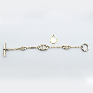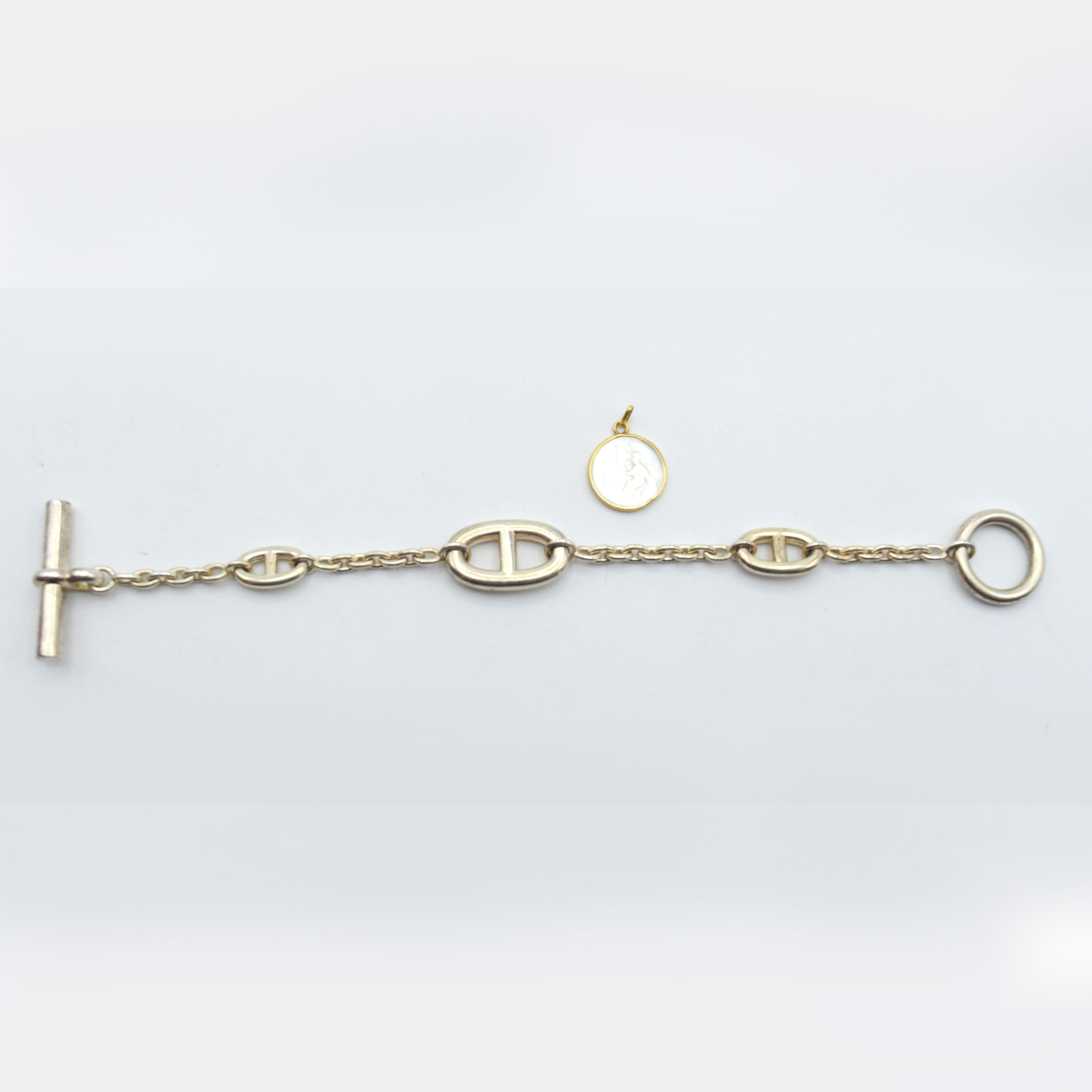 Bracelet en argent 925/1000 signé HERMES - 27.2 g (19 cm) + boîte d'origine Pendentif en or jaune 18 ct (nacre, abîmé, bosselé) - 0.9 g brut