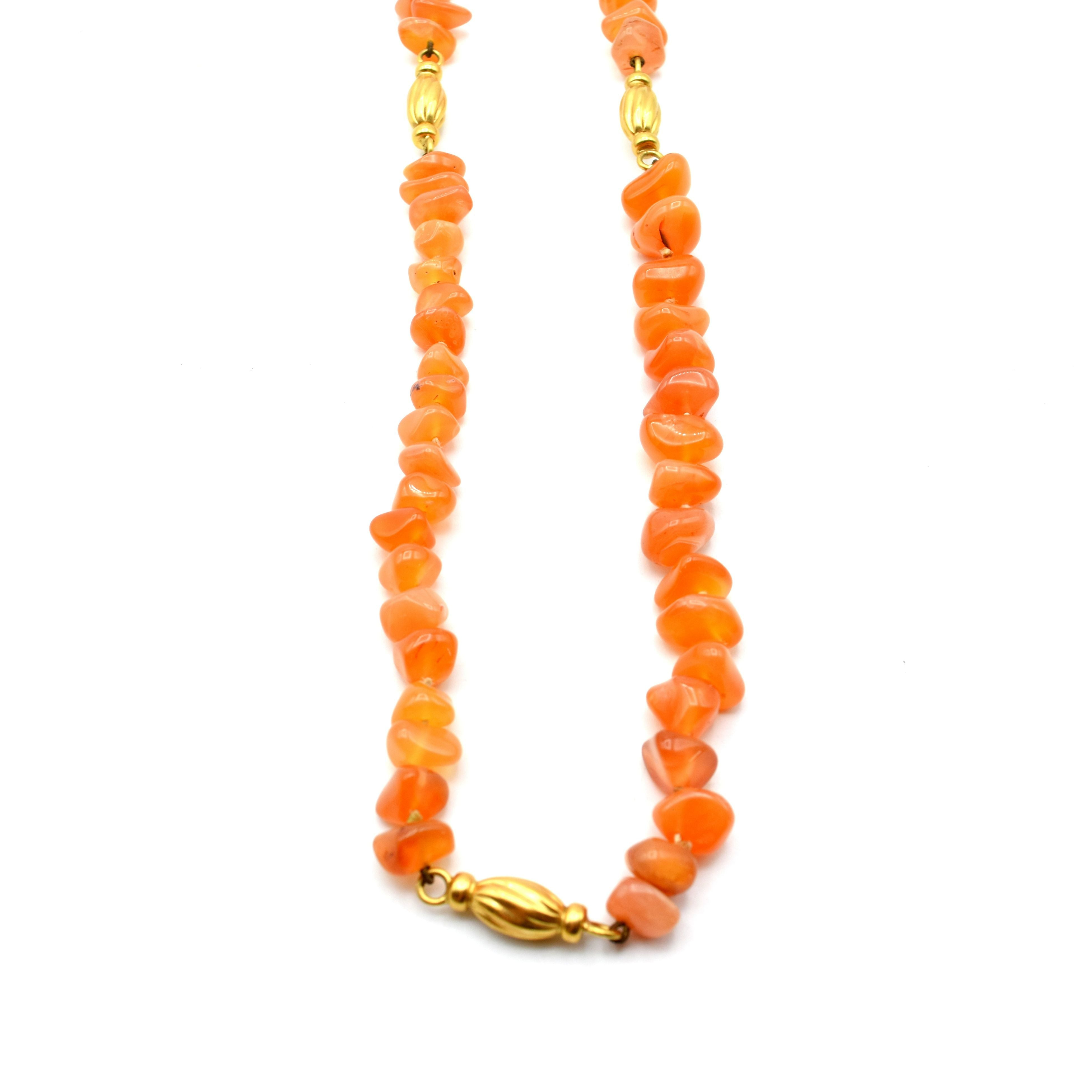 Sautoir en agathe avec parties en or jaune 18 ct (abîmé) (70 cm)