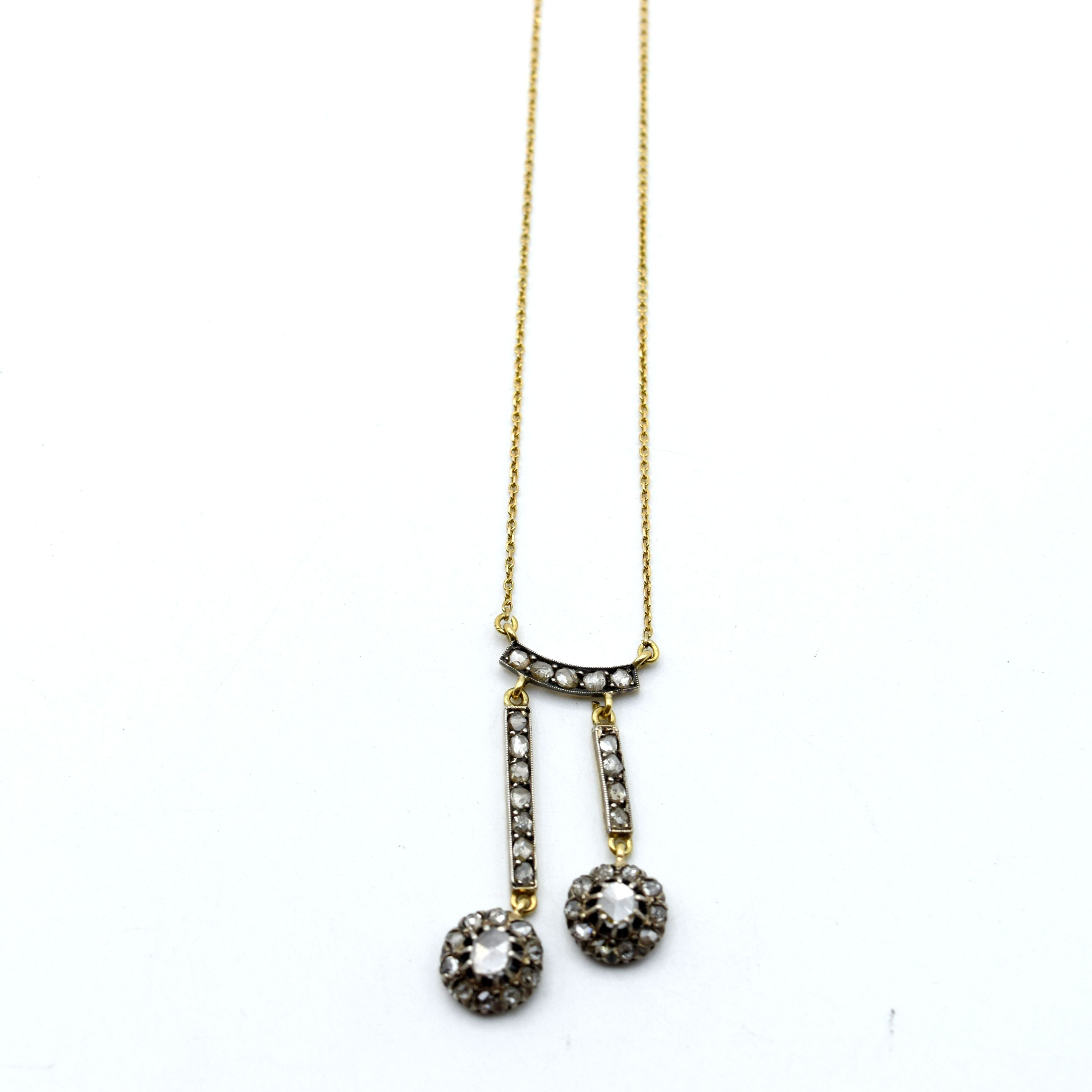 Collier avec pendentif attaché en or jaune 18 ct et parties en argent serti de roses de diamant (légèrement abîmé) - 5.2 g brut (42 cm)