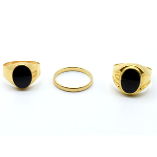 Alliance et 2 chevalières en or jaune 18 ct (pierres de couleur, abîmées) - 18 g brut (Tailles: 66, 67 & 70)