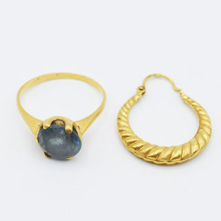 Bague et 1 boucle d'oreille en or jaune 18 ct (pierre de couleur, pierre ébréchée, griffe cassée, bosselées) - 5.2 g brut (Taille: 58)