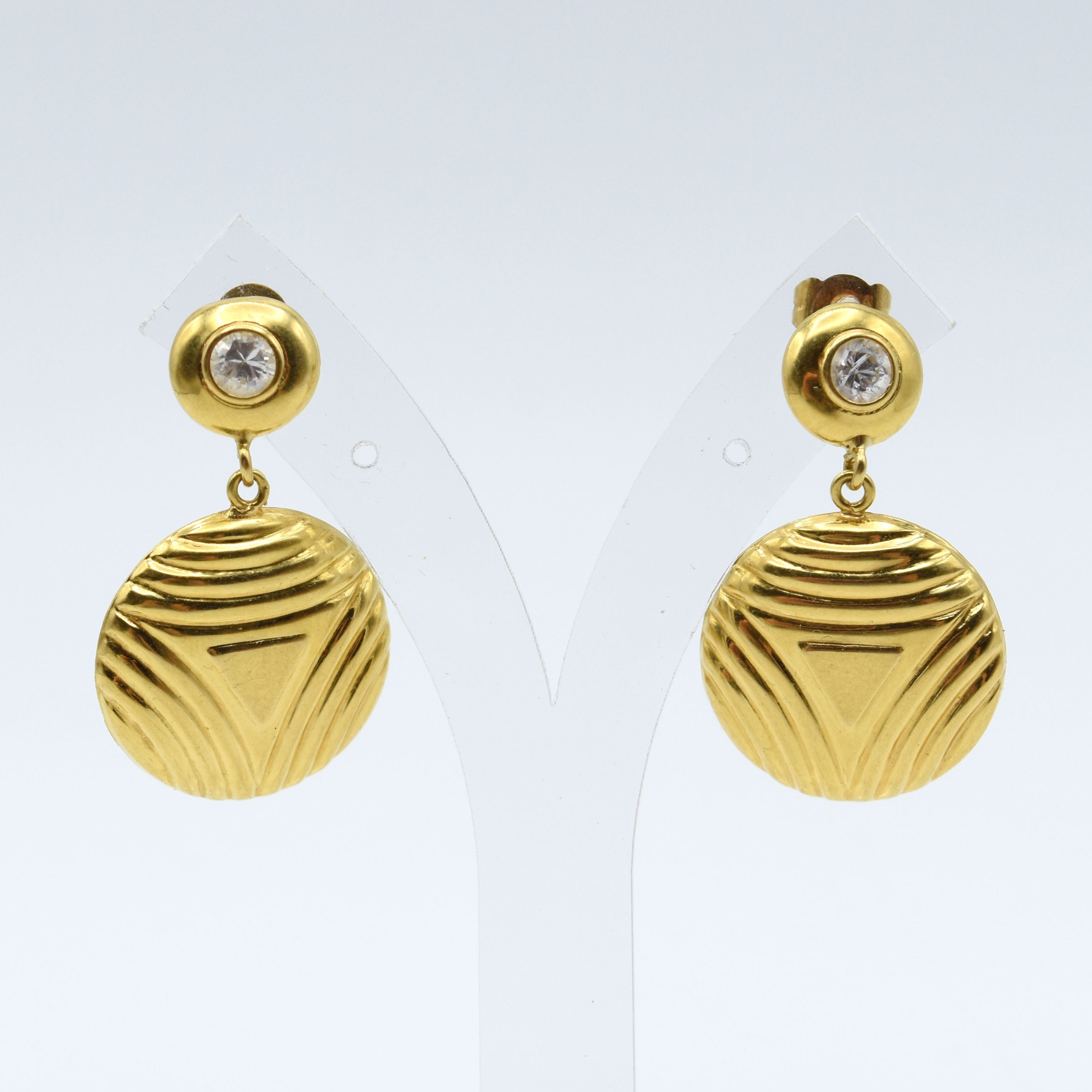 2 boucles d'oreilles en or jaune 18 ct (pierres fausses) - 5.7 g brut
