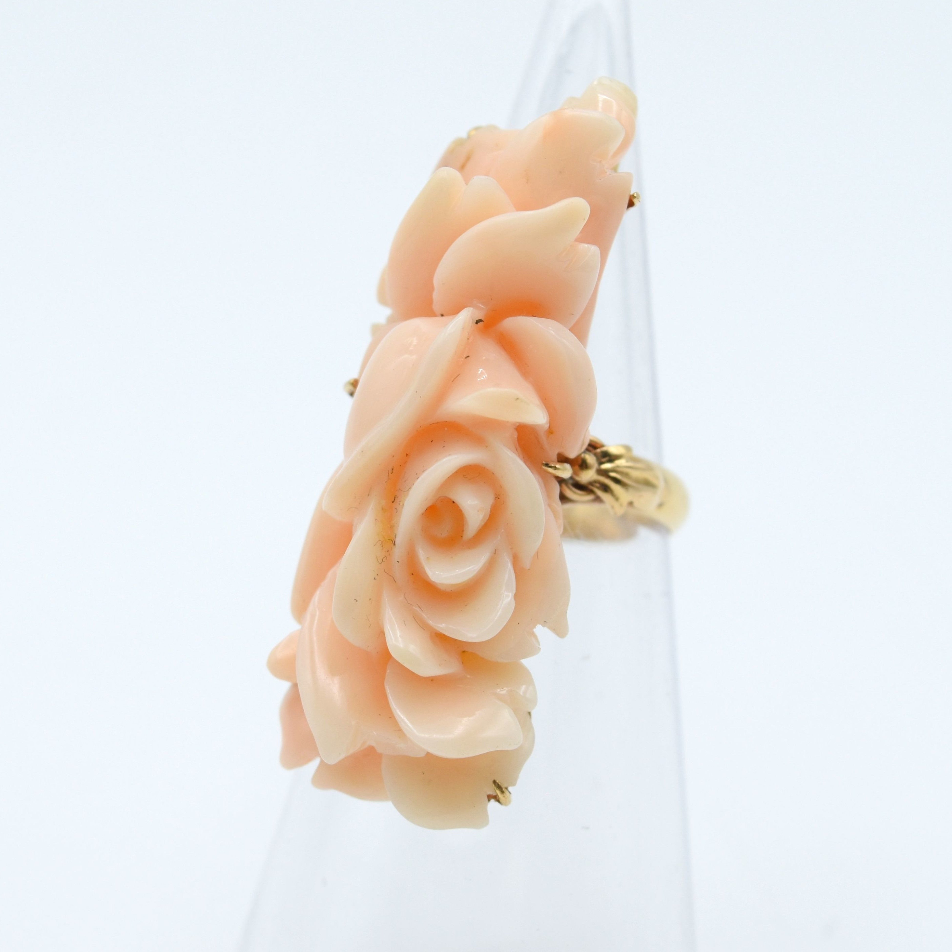 Bague en or jaune 14 ct sertie d'1 corail taillé - 12.5 g brut (Taille: 55.5)