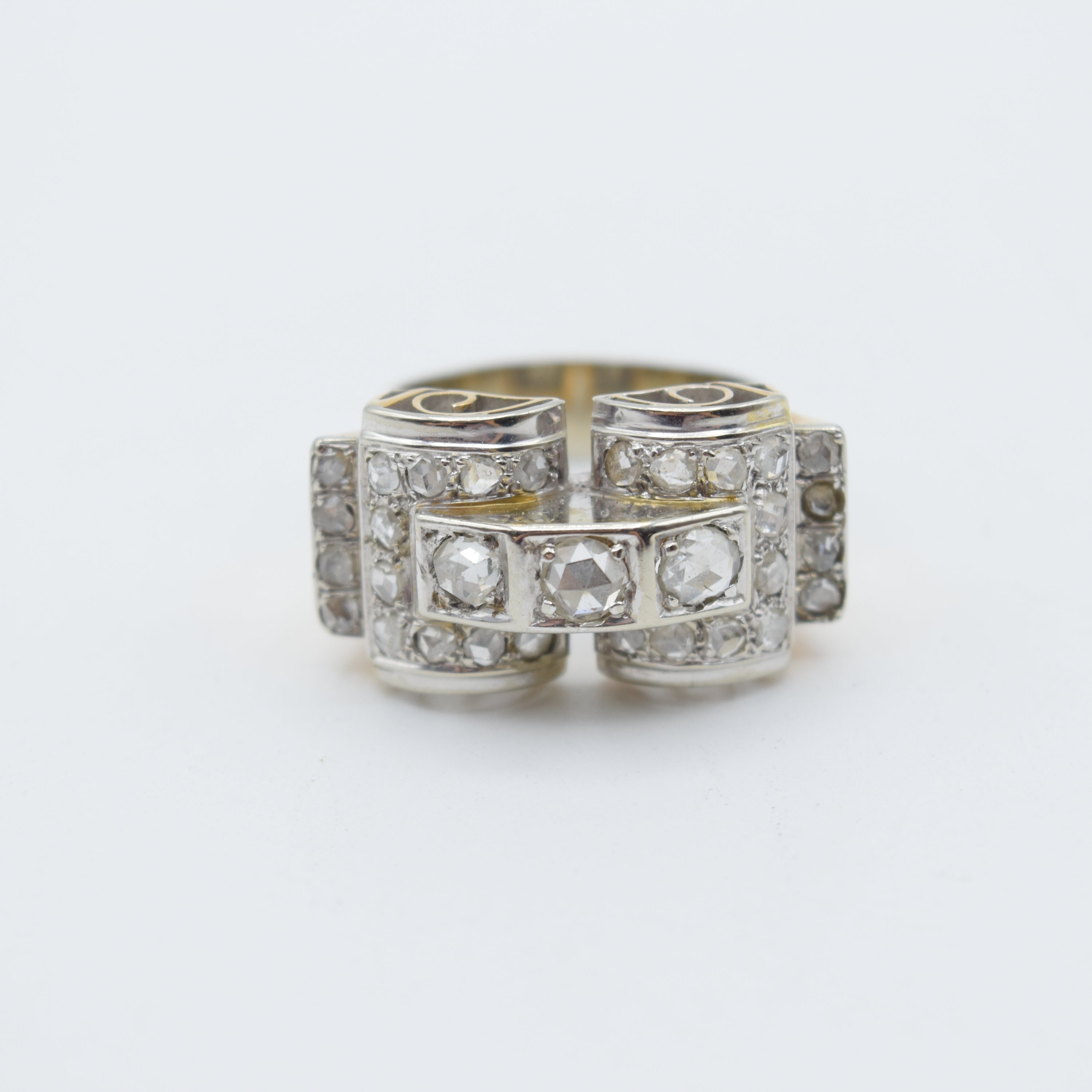 Bague en or jaune et blanc 18 ct sertie de roses de diamant (pierres ébréchées) - 10.7 g (Taille: 56.5)