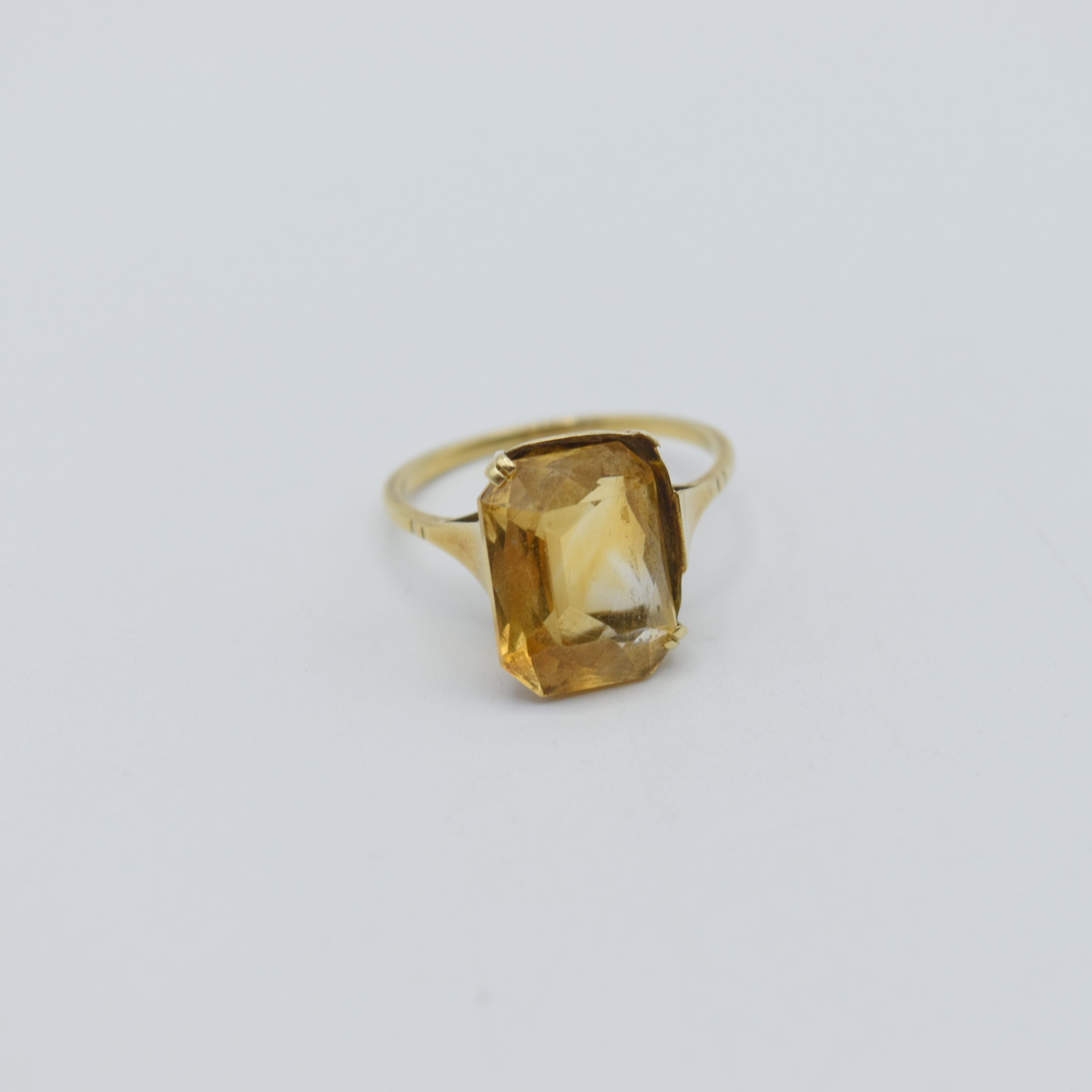 Bague en or jaune 14 ct (pierre de couleur, pierre désertie, abîmée, bosselée, griffes cassées) - 2.8 g brut (taille: 55)
