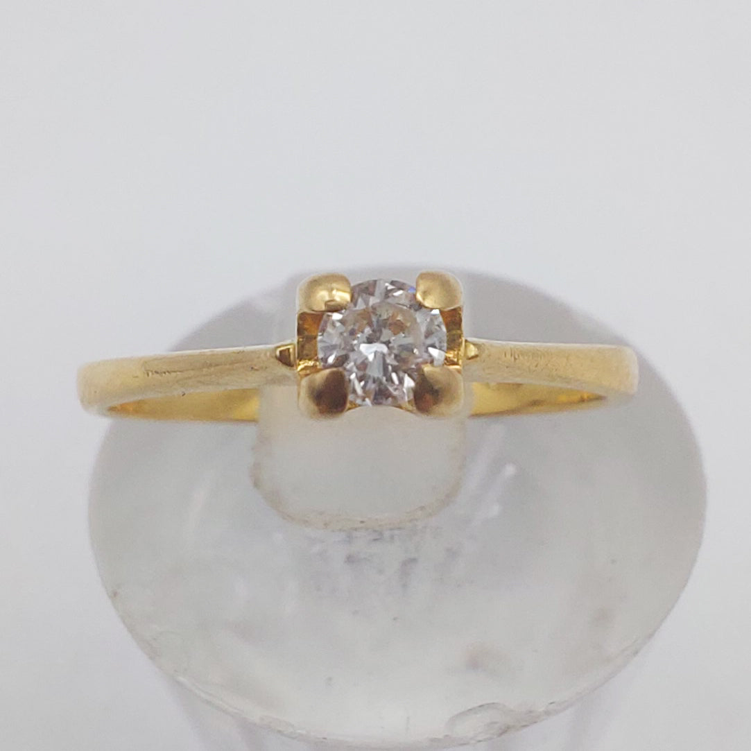 Bague en or jaune 18 ct sertie d'1 brillant +/- 0.13 ct - 2.3 g (Taille: 54.5)