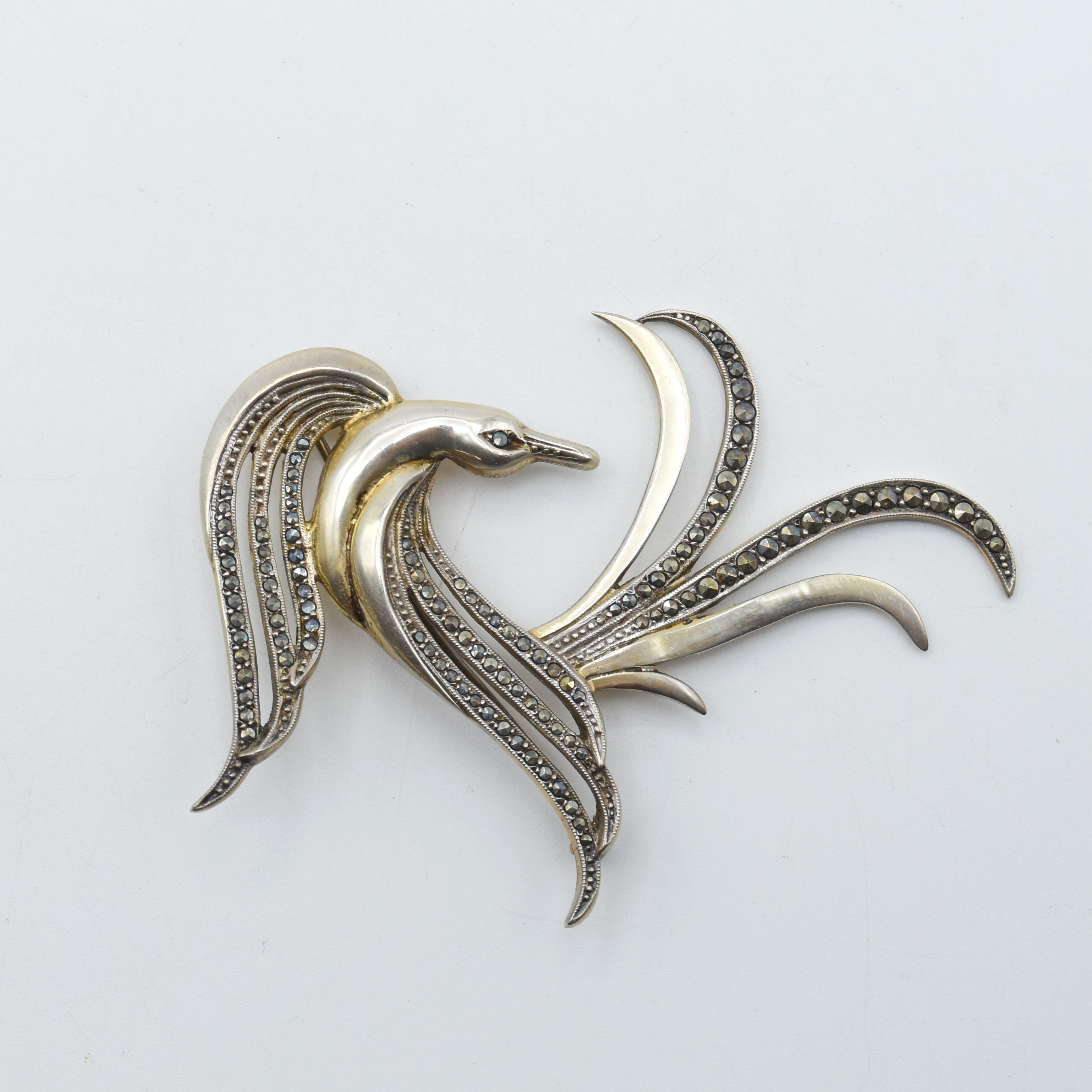 Broche (oiseau) en argent sertie de marcasites (bosselée) - 14.4 g brut