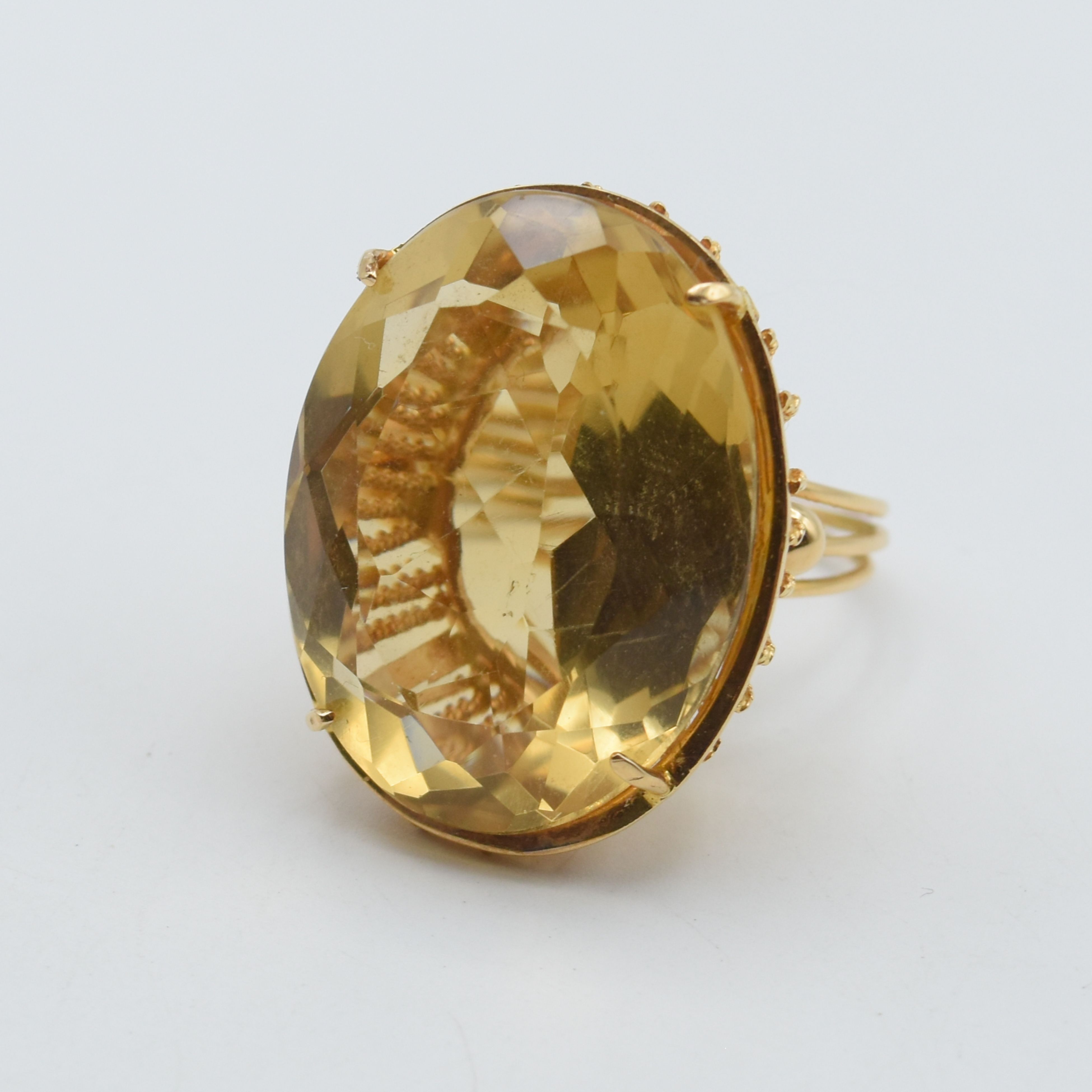 Bague en or jaune 18 ct sertie d'1 citrine - 17.2 g brut (Taille: 56)