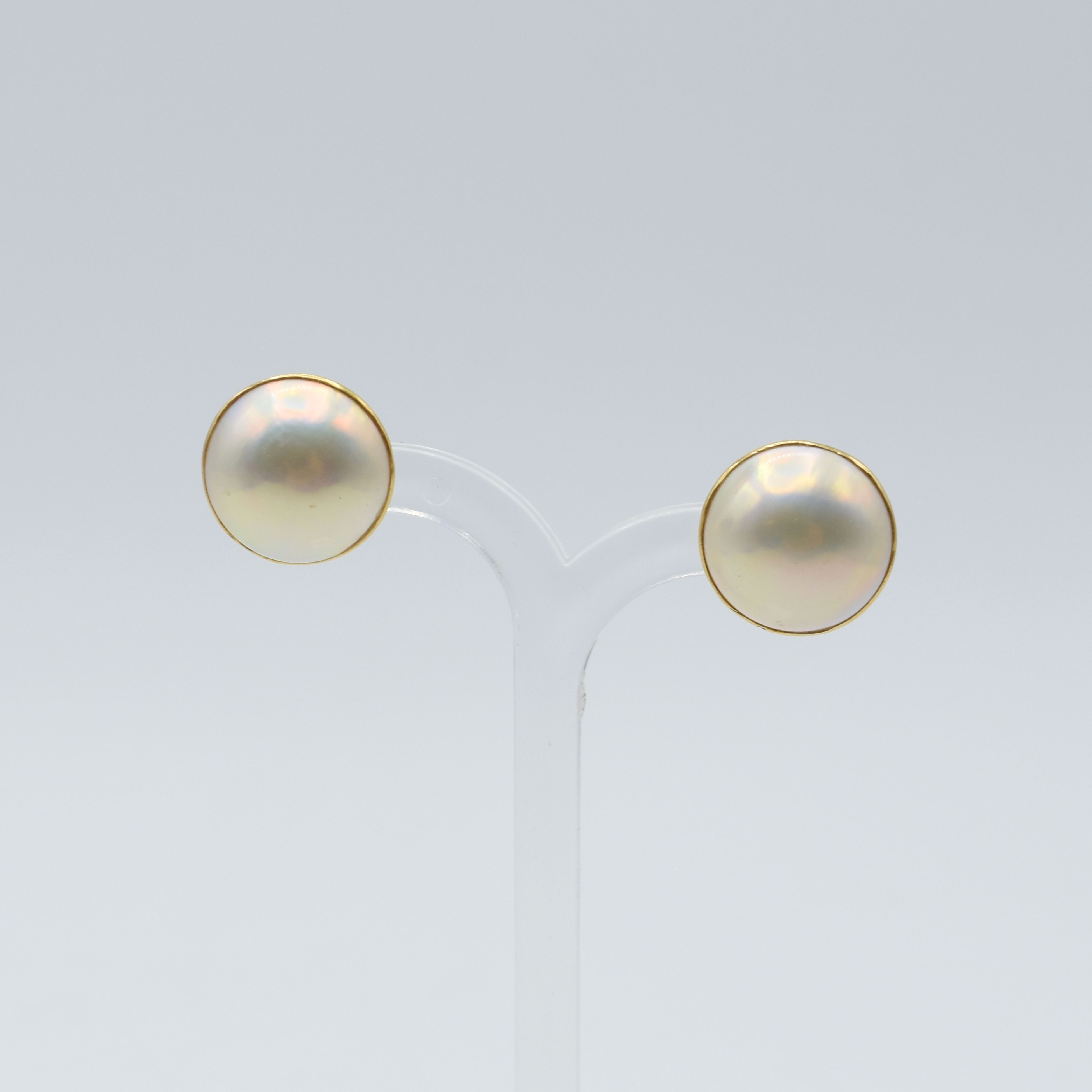 2 boucles d'oreilles en or jaune 18 ct serties de 2 perles mabé (poussettes en or jaune 14 ct) - 6.5 g brut