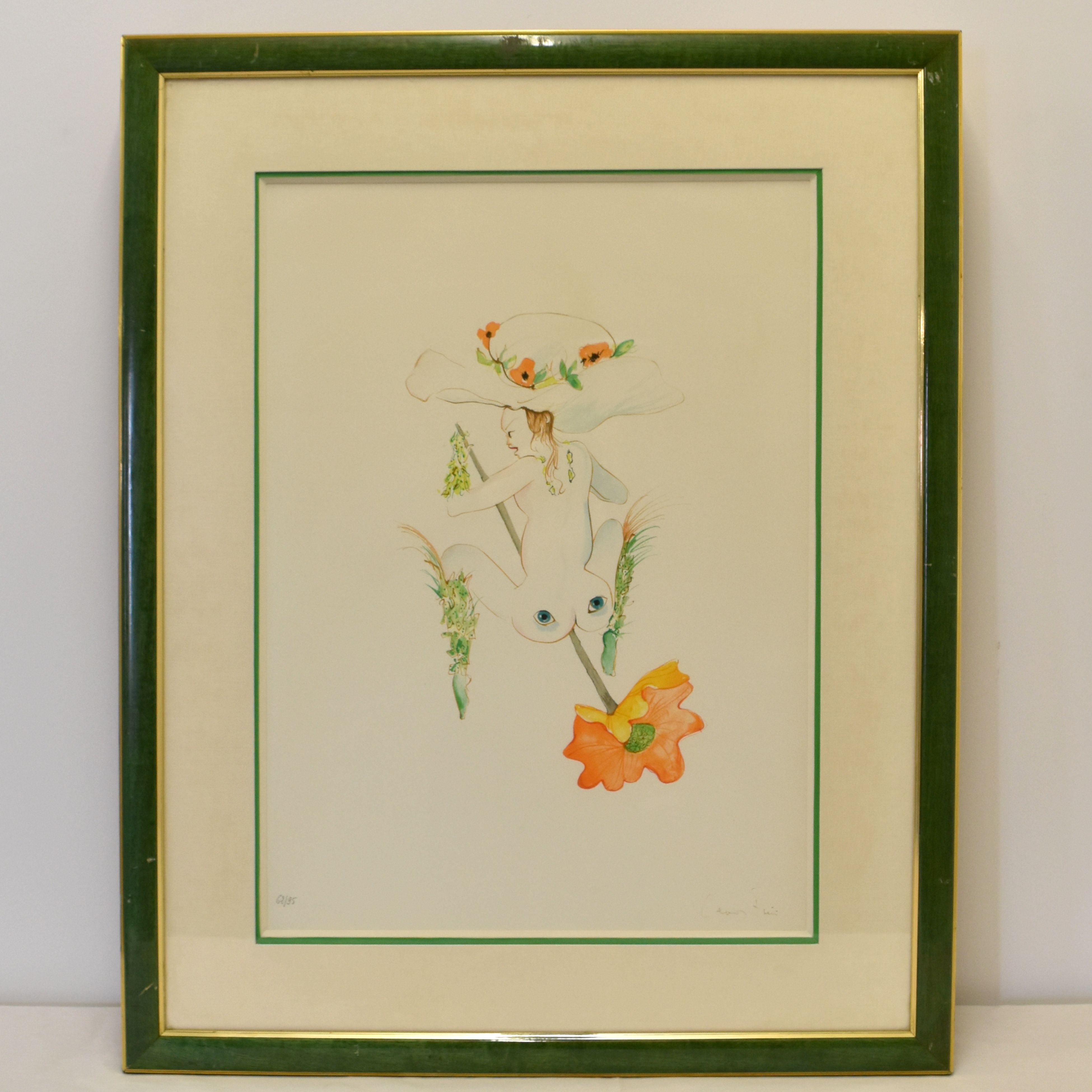 Lithographie signée Leonor FINI: "Nue aux fleurs" tirage (33 x 47 cm)