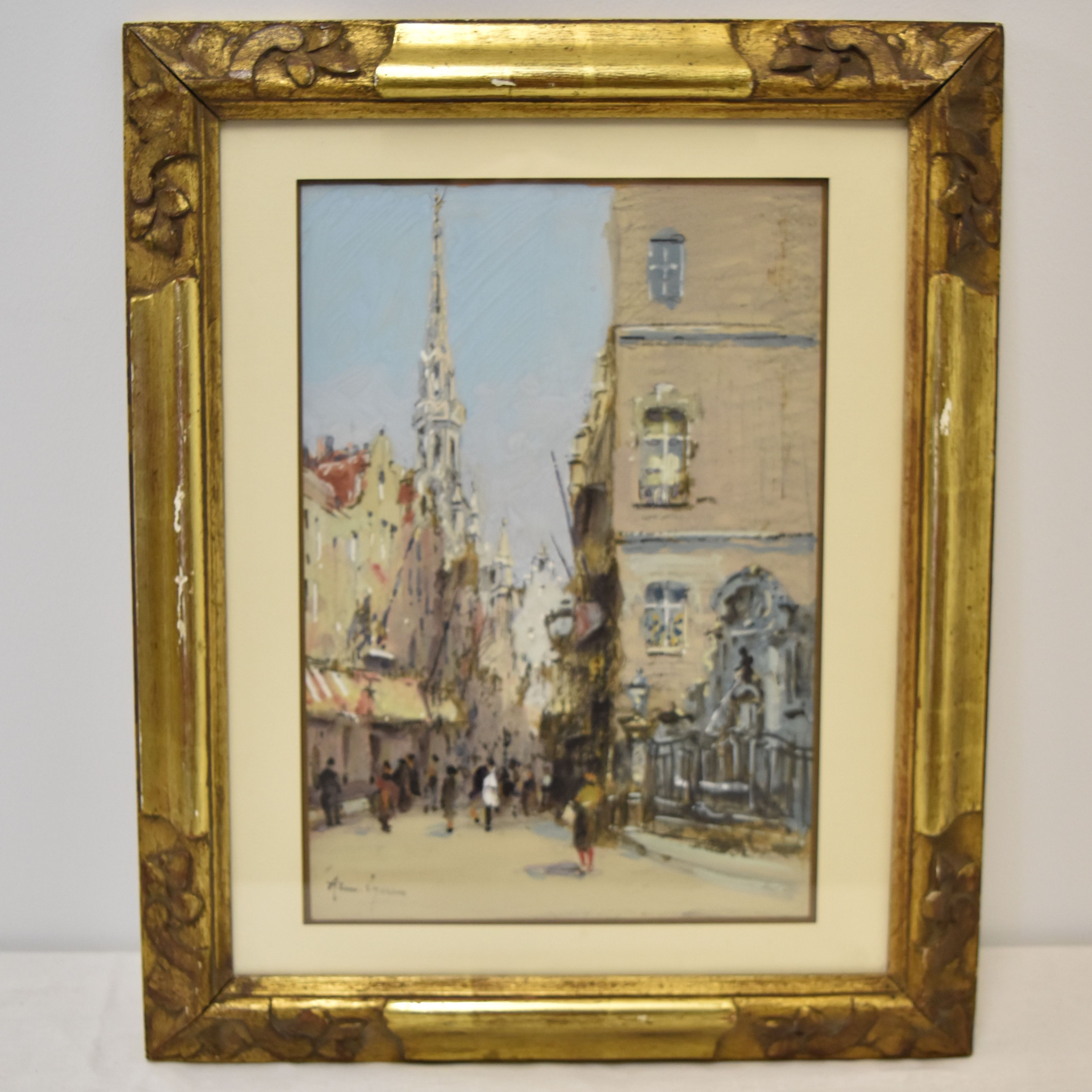 Technique mixte sur papier signée Amédée LYNEN: Vue de Bruxelles (cadre légèrement abîmé) (18.5 x 26.5 cm)