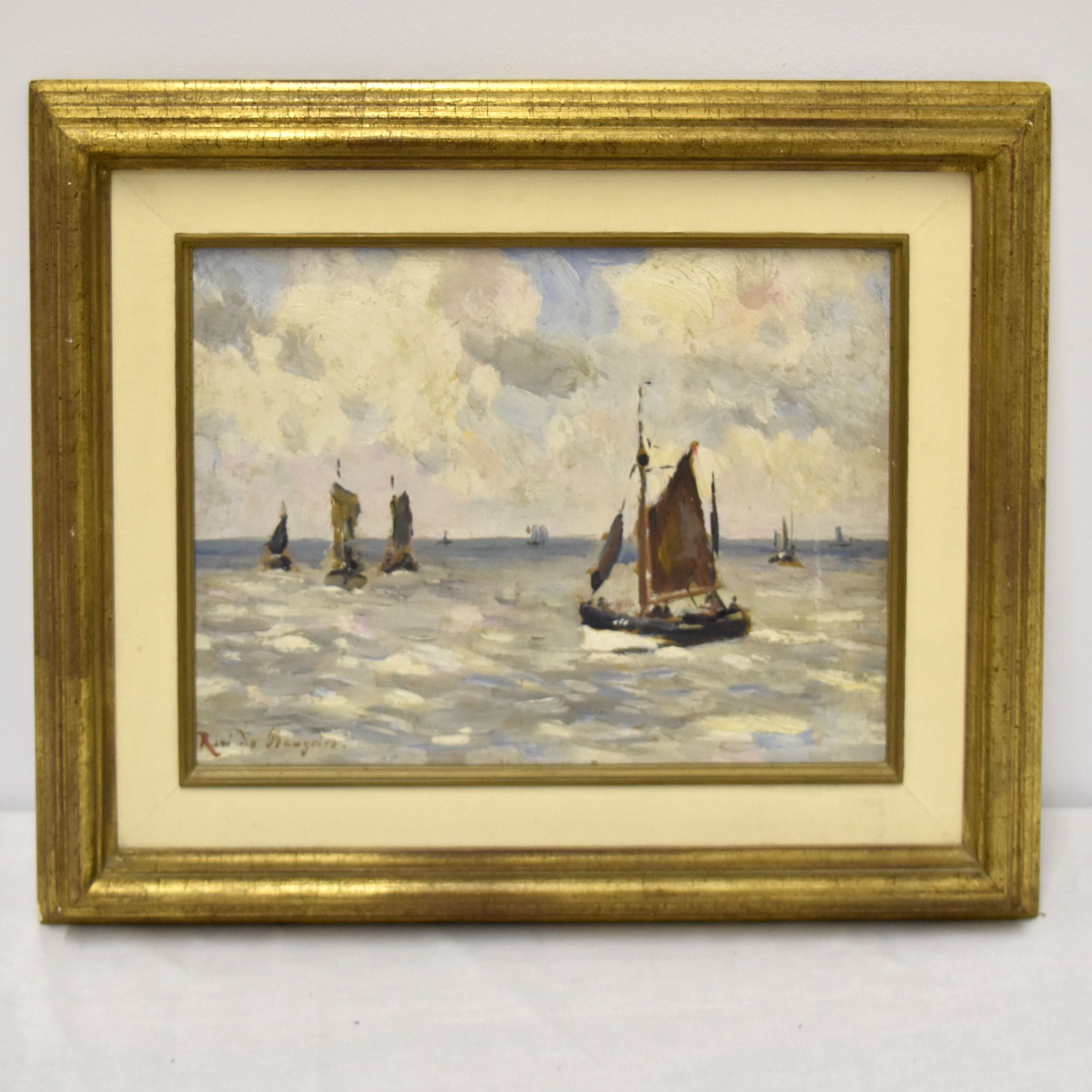 Huile sur panneau signée René DE BAUGNIES: Marine (22 x 16.5 cm)