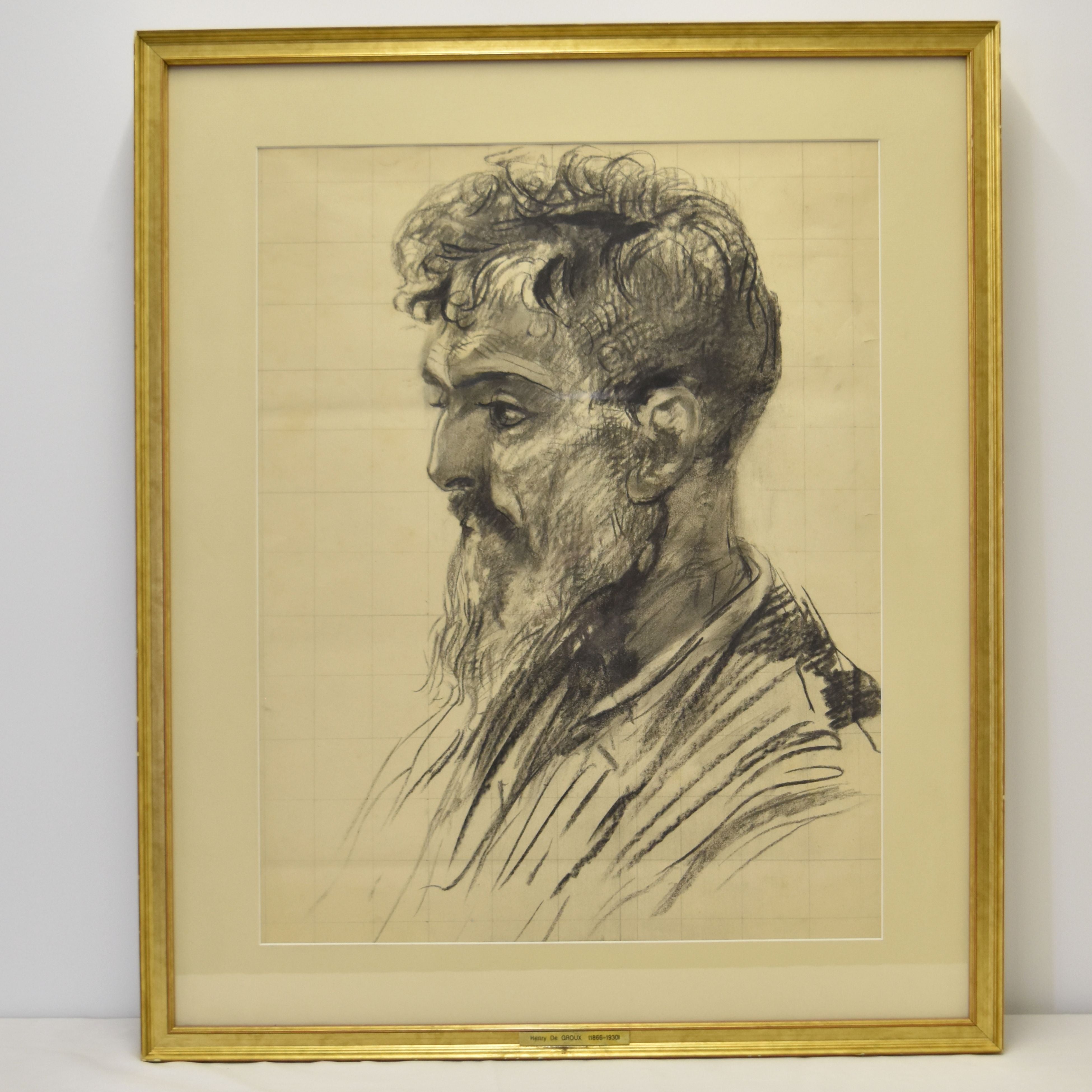 Dessin au fusain sur papier attribué à Henri DE GROUX: "Portrait d'un homme" (45 x 57.5 cm)