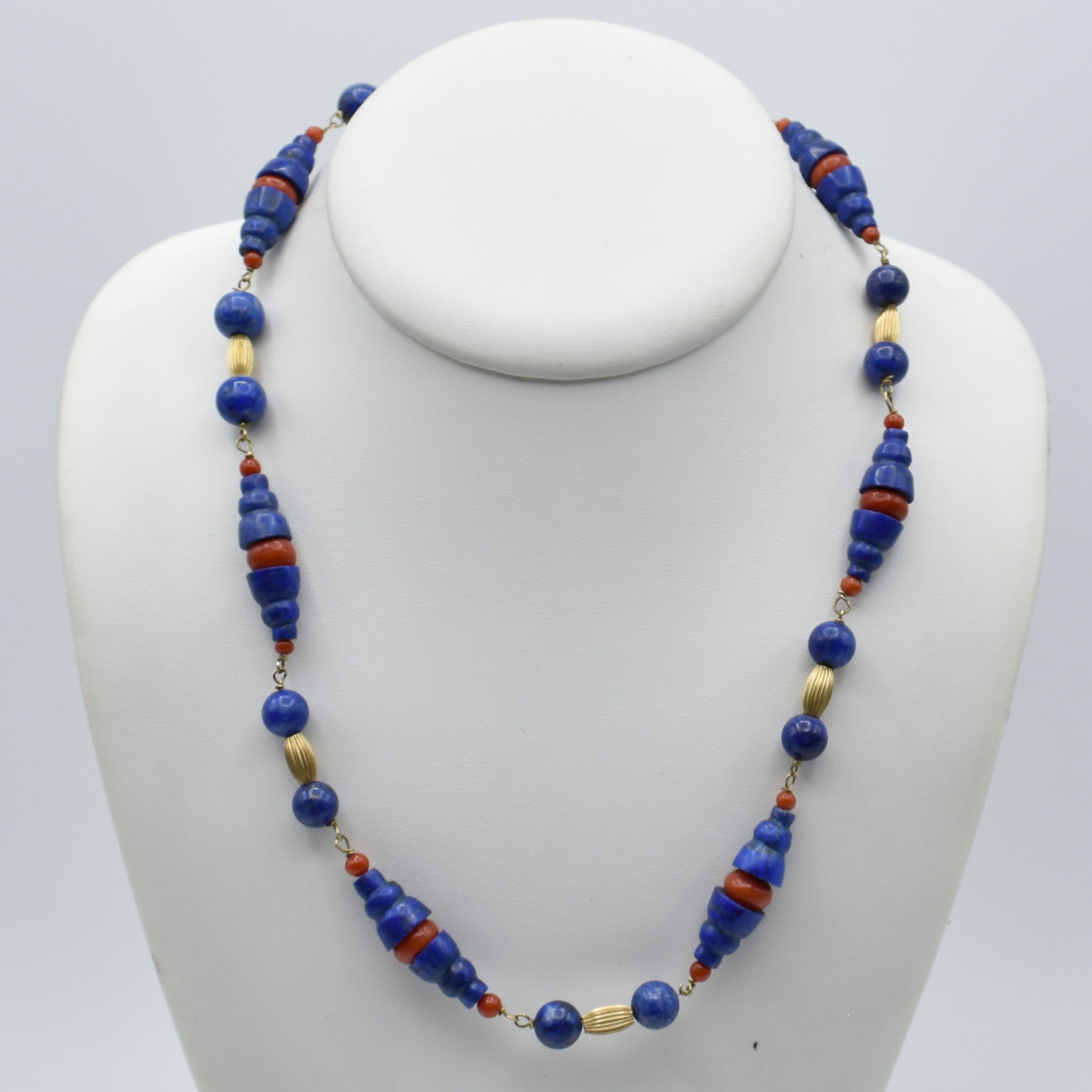 Collier en lapis-lazuli et corail avec parties en métal (48 cm)